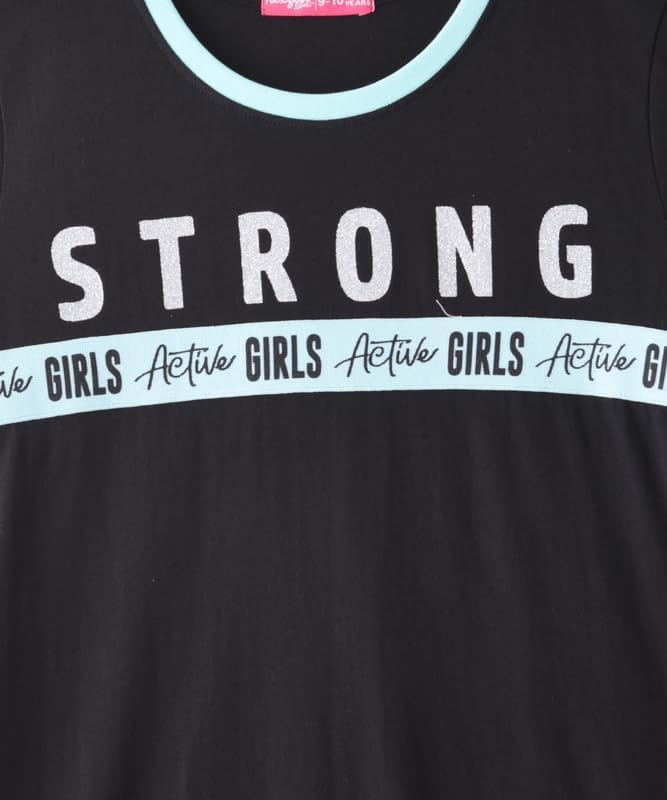 فستان من قطعة واحدة للبنات باكمام قصيرة وشريط مطبوع من نيكسجين، 7-8 سنوات، اسود S24HDGLGSPG01