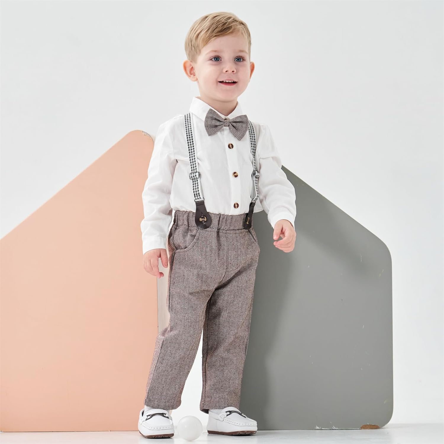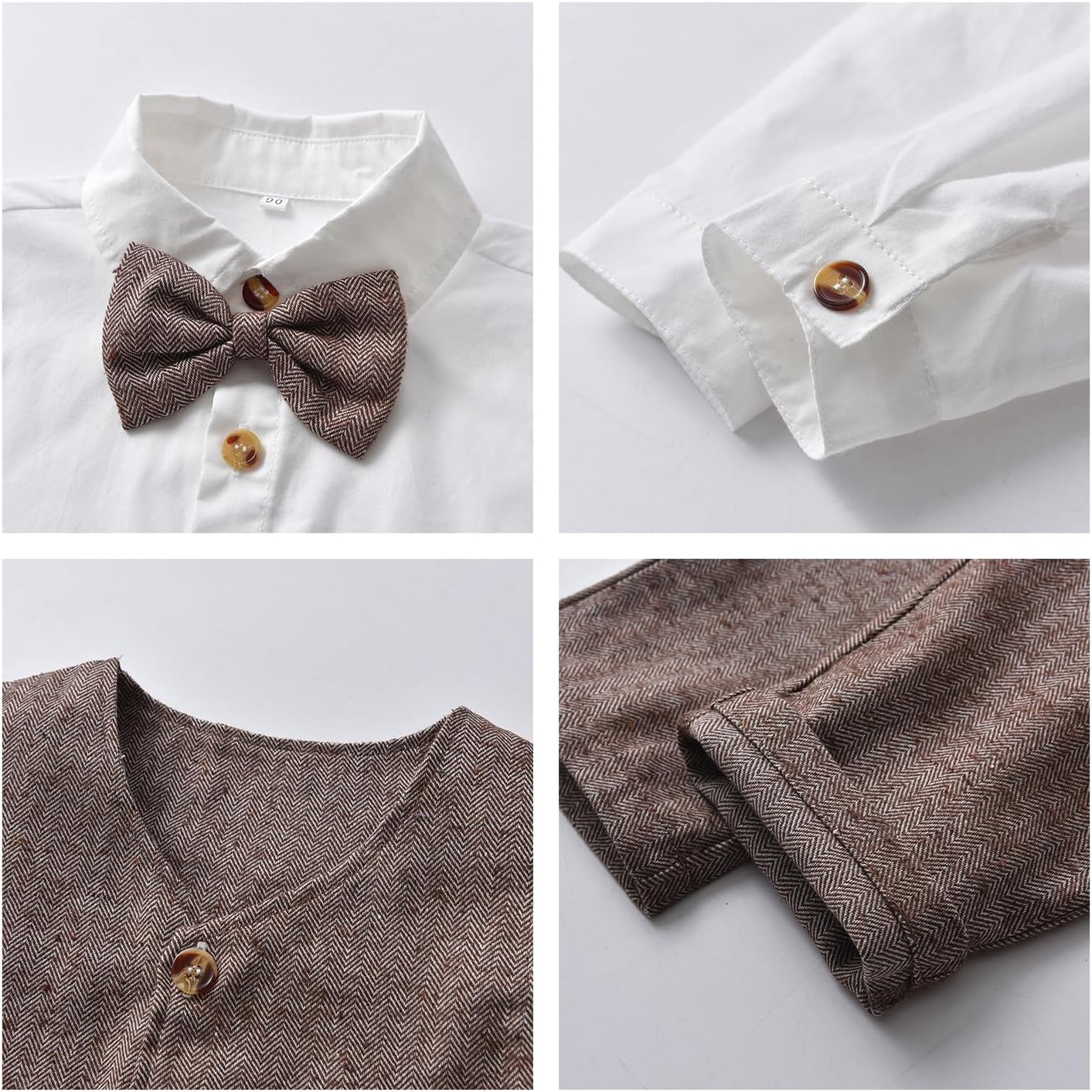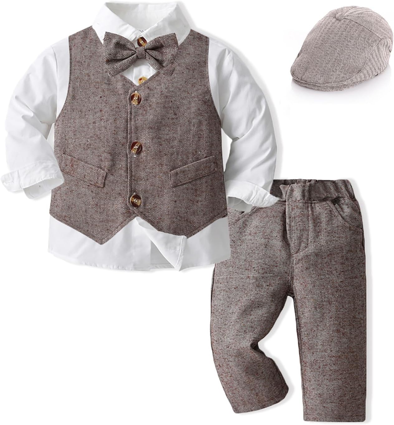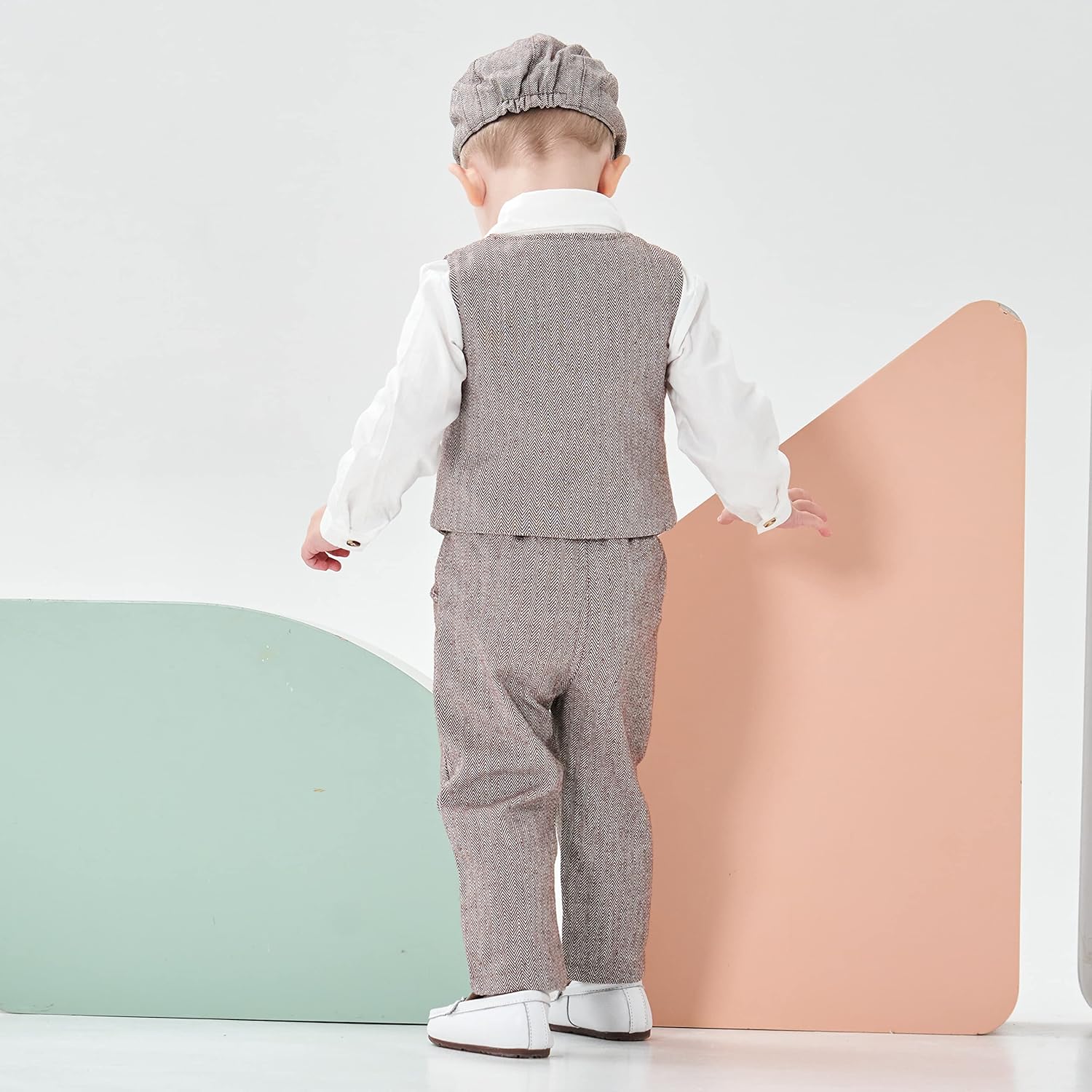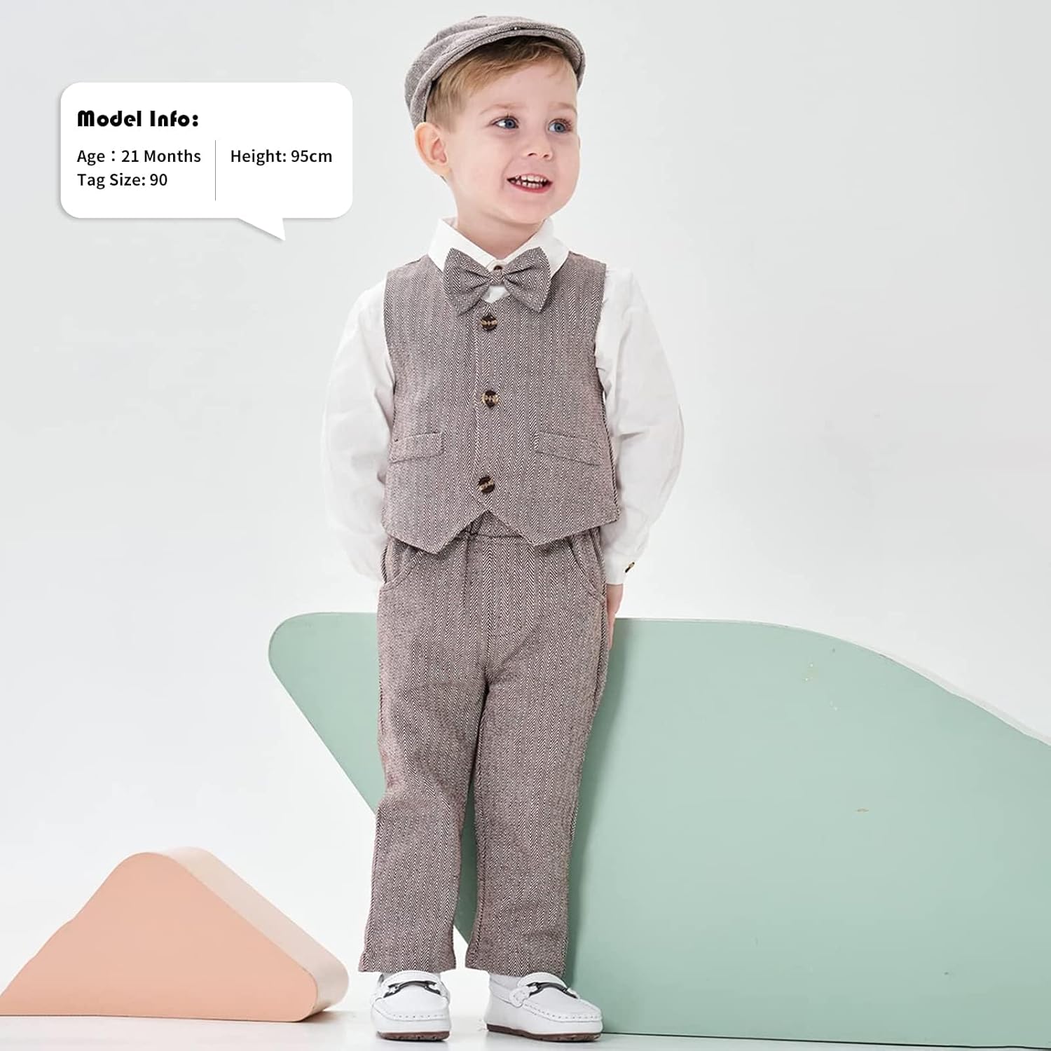 فولنبوي بدلة أطفال للأولاد سترة وقميص مع ربطة عنق لحفلات الزفاف الاحتفالية طقم من 4 قطع