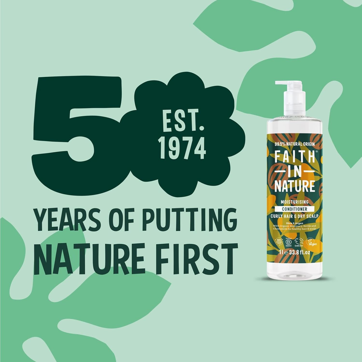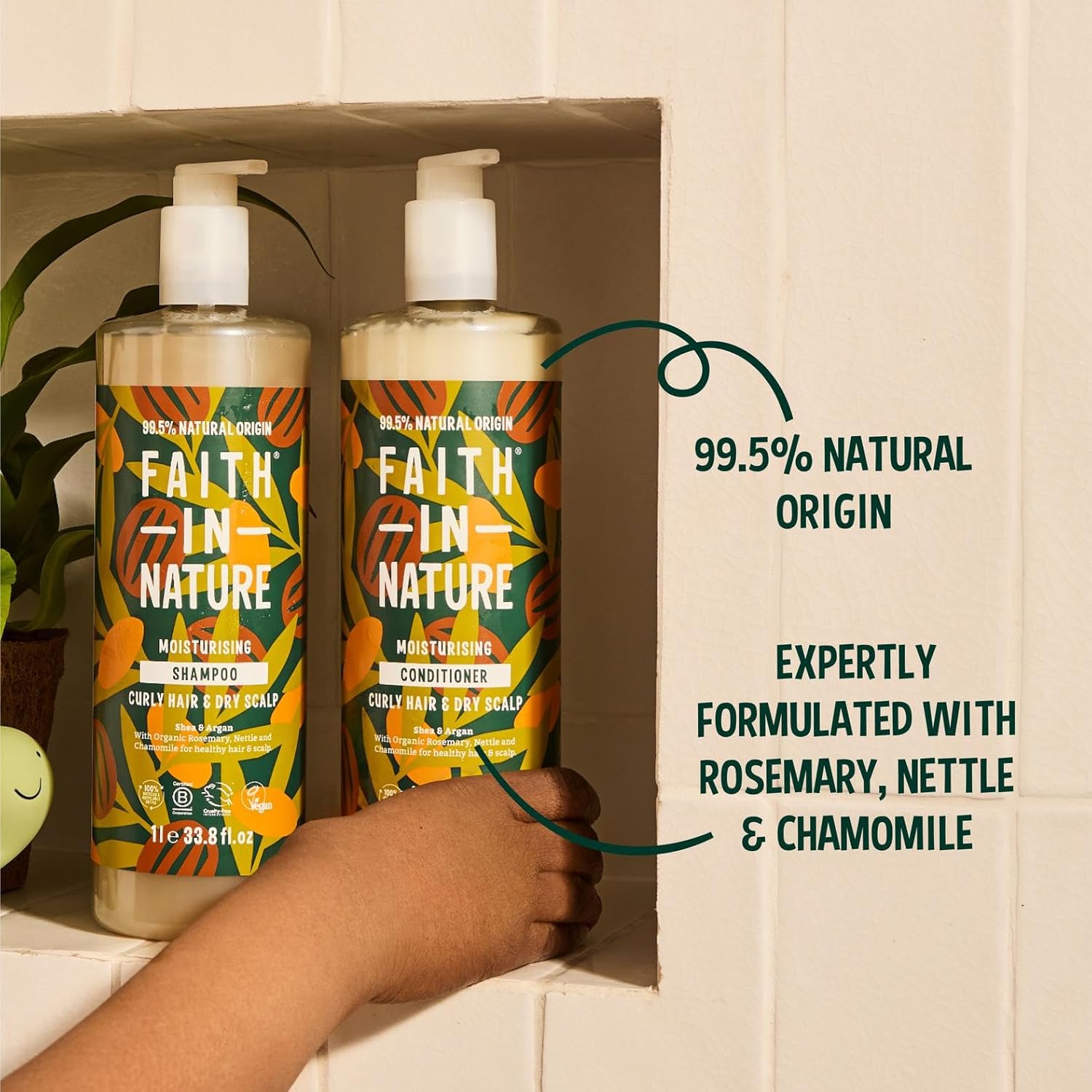 فيث ان نيتشر بلسم الشيا والارغان الطبيعي 1 لتر، مرطب للشعر المجعد وفروة الرأس الجافة، نباتي ولم يتم اختباره على الحيوانات، بدون اس ال اس، سيليكون او بارابين، مقاس عائلي
