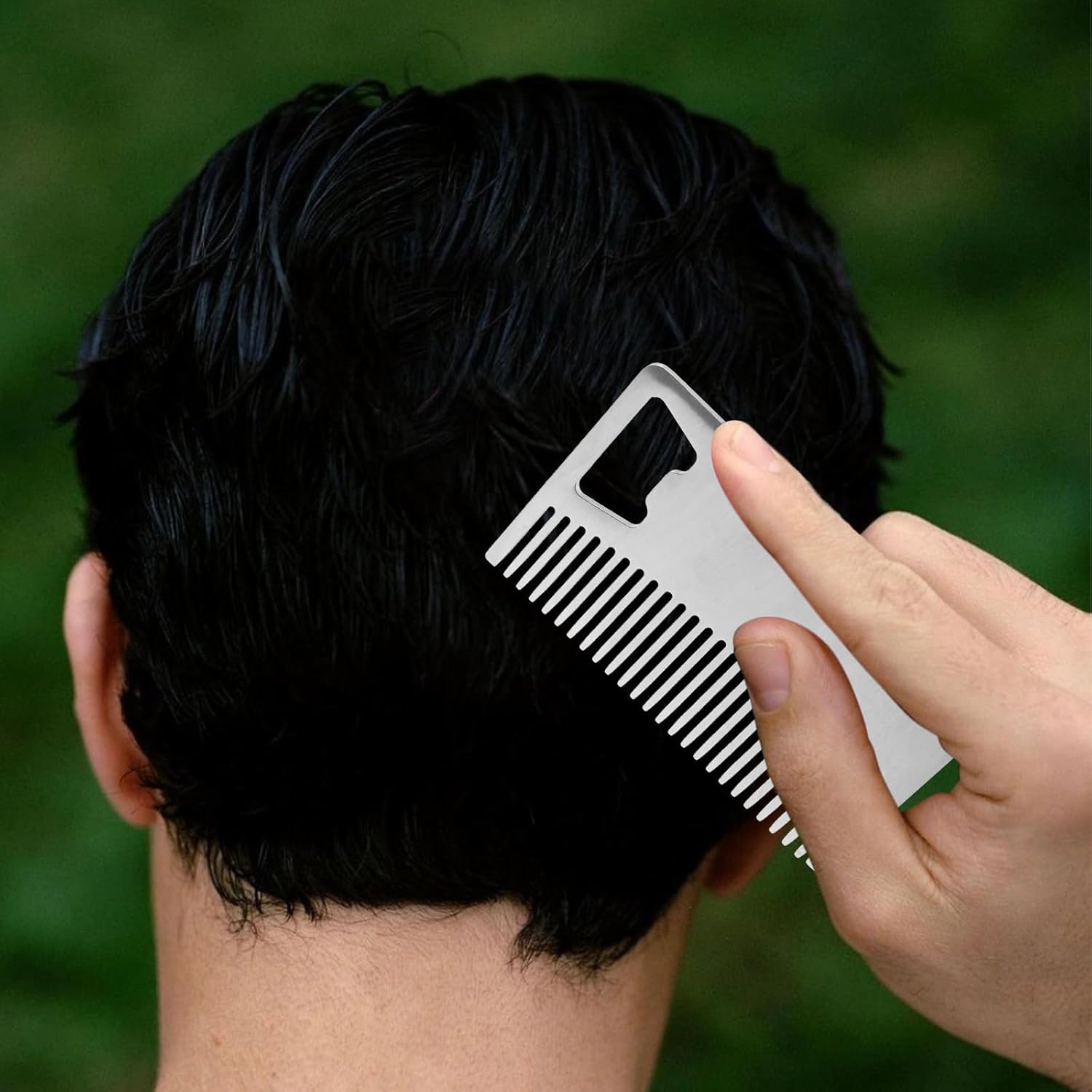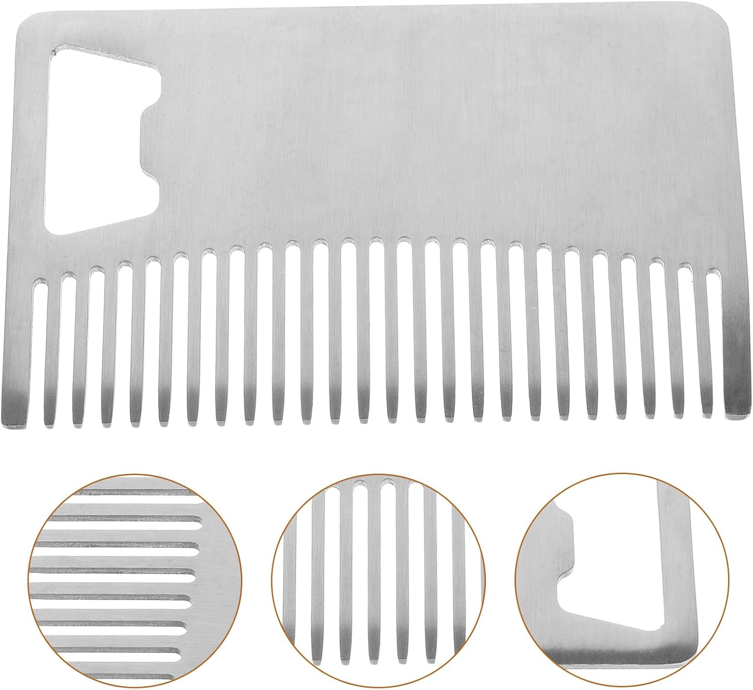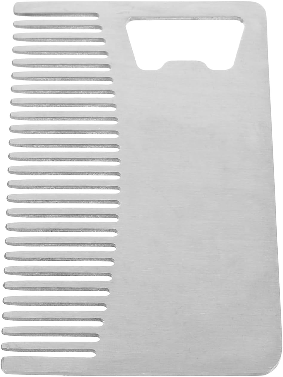 مشط متعدد الوظائف لبطاقات الائتمان: يتميز هذا المشط المصنوع من الستانلس ستيل للشعر واللحية بفتاحة زجاجات مدمجة، تجمع بين العناية والفائدة العملية في تصميم صغير بحجم بطاقة الائتمان مثالي للرجال الذين يبحثون عن الراحة والكفاءة