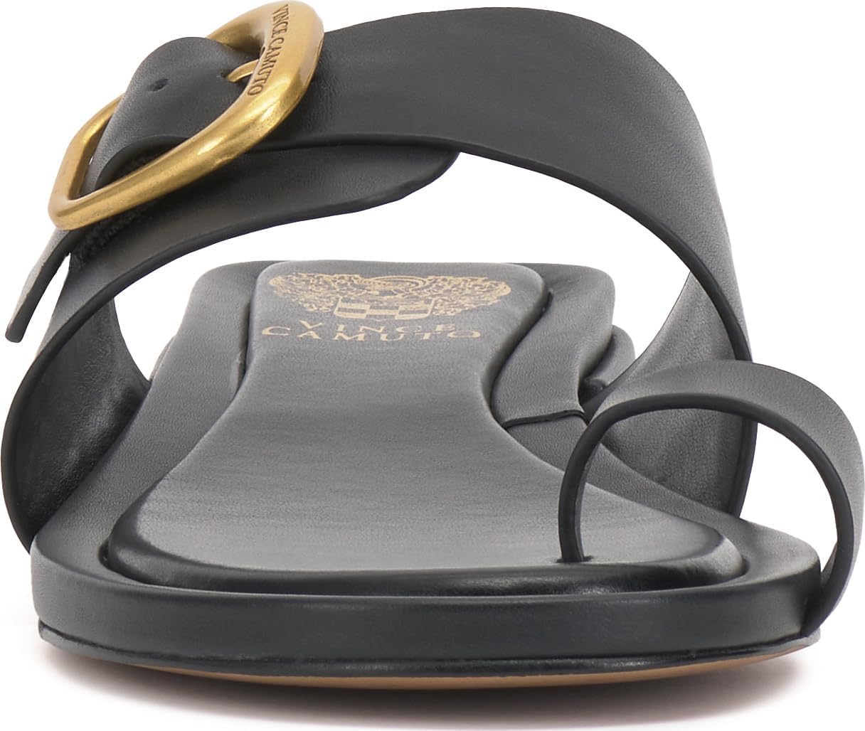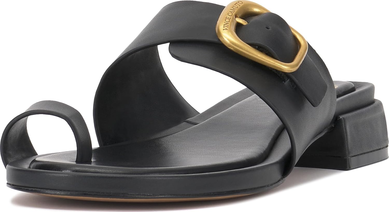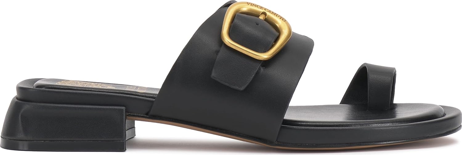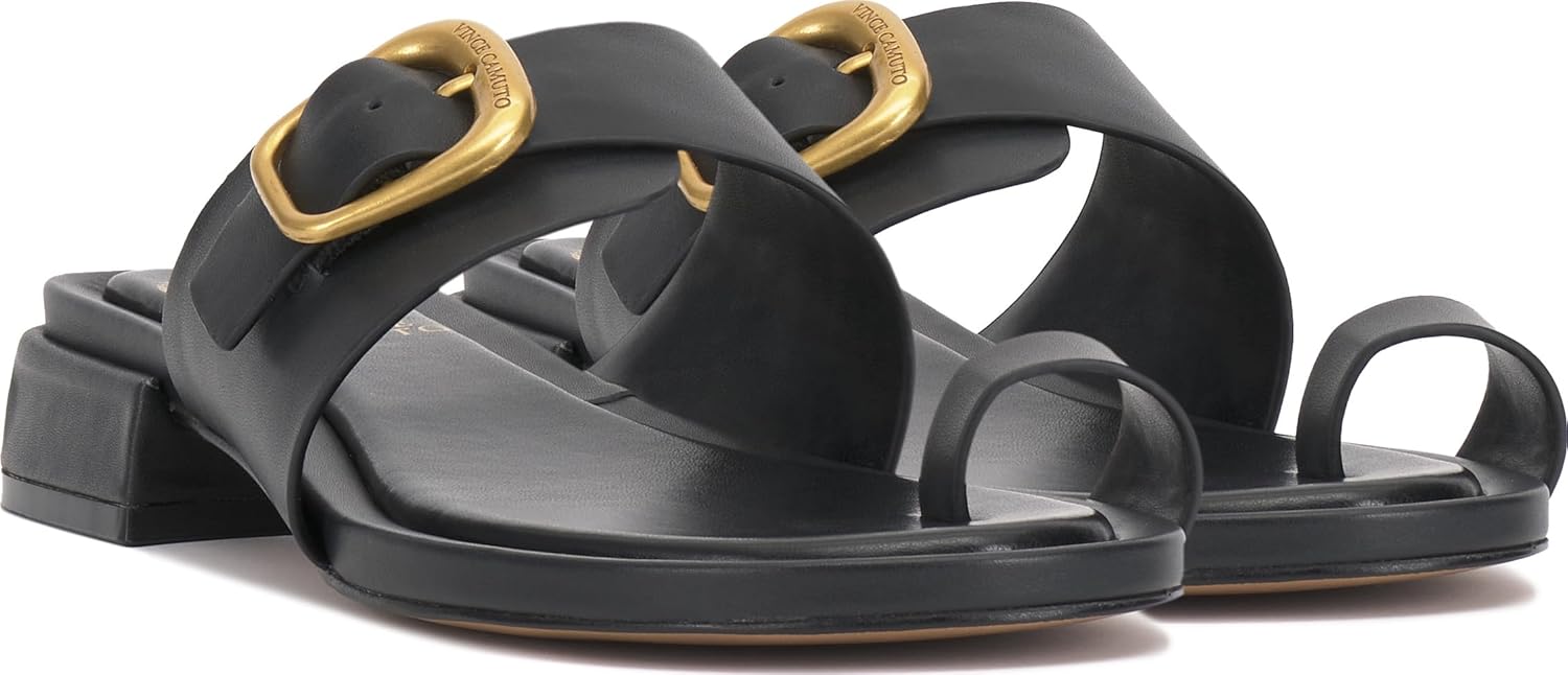 يجمع هذا الصندل المسطح بين التصميم المتطور والراحة اليومية. يتميز بمقدمة مفتوحة مستديرة وكعب مربع طويل يبلغ طوله 2.5 انش، مما يوفر رفعًا أنيقًا وعمليًا. الصندل مزود بحزام حلقي لأصابع القدم وحزام مشط القدم قابل للتعديل، مع مشبك معدني جريء محفور عليه اسم فينس كاموتو لإضفاء لمسة من الأناقة المميزة. يضمن النعل الداخلي المبطن والنعل الخارجي المطاطي الراحة طوال اليوم، مما يجعله الخيار الأمثل لأيام الجمعة الصيفية، سواء كنت داخل المكتب أو خارجه. قطعة أساسية أنيقة ومتعددة الاستخدامات لخزانة الملابس.