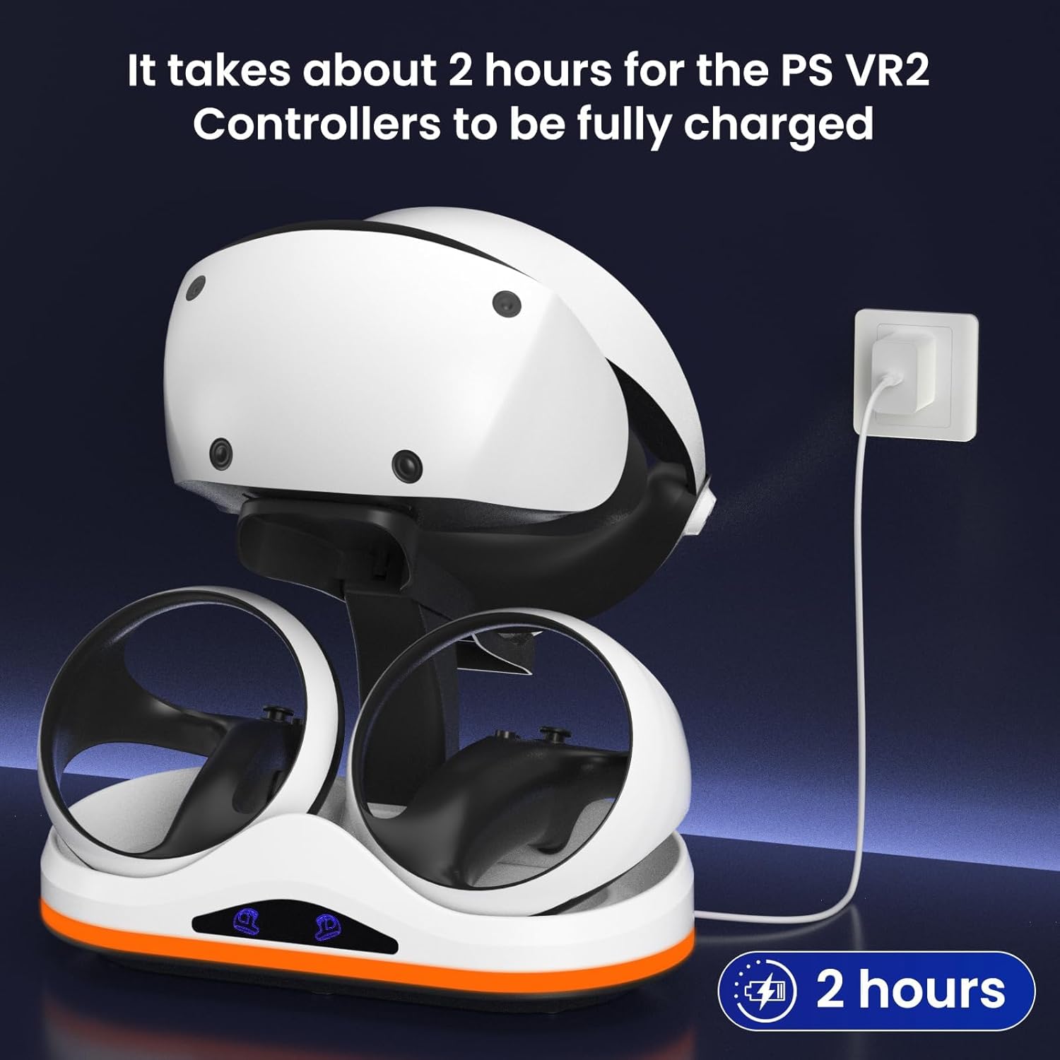 ⚡ – 【فعالة وآمنة】مزودة بقدرة شحن سريع، تقوم هذه المحطة بشحن سماعة الواقع الافتراضي وأجهزة التحكم بالكامل في غضون ساعتين فقط. تضمن حماية الشريحة المدمجة الشحن الآمن والحماية من الشحن الزائد وارتفاع درجة الحرارة.