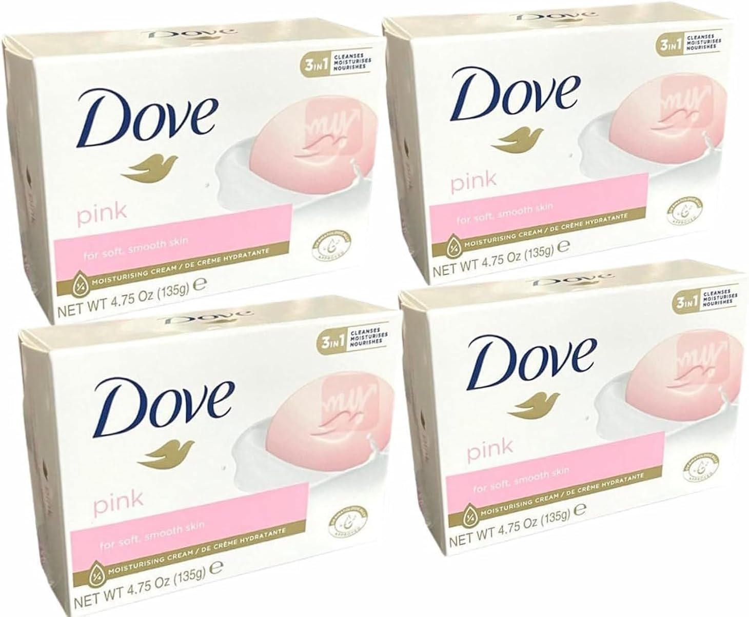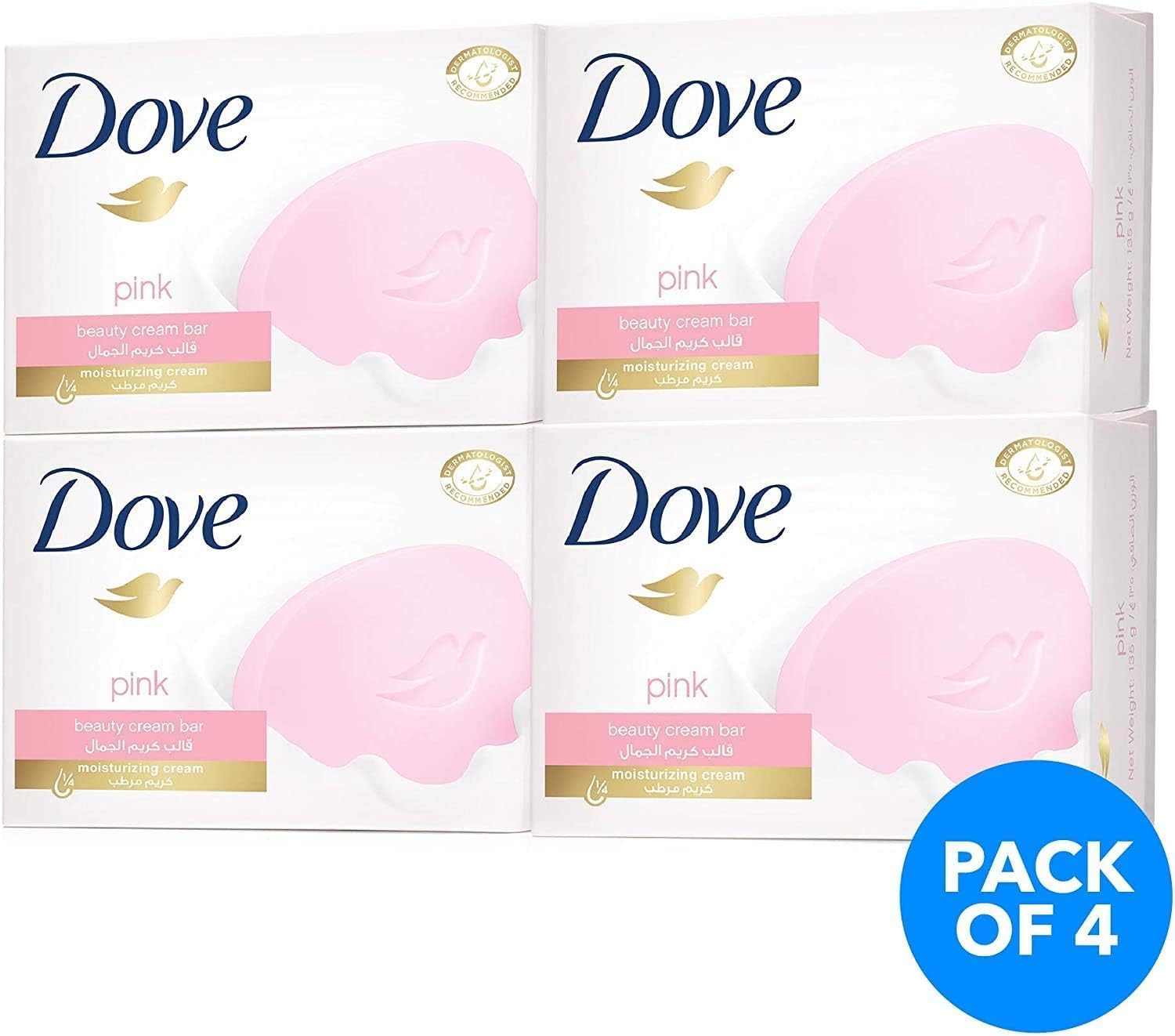 قالب صابون كريم مرطب للجمال من دوف، زهري، 135 غرام (عبوة من 4 قطع)