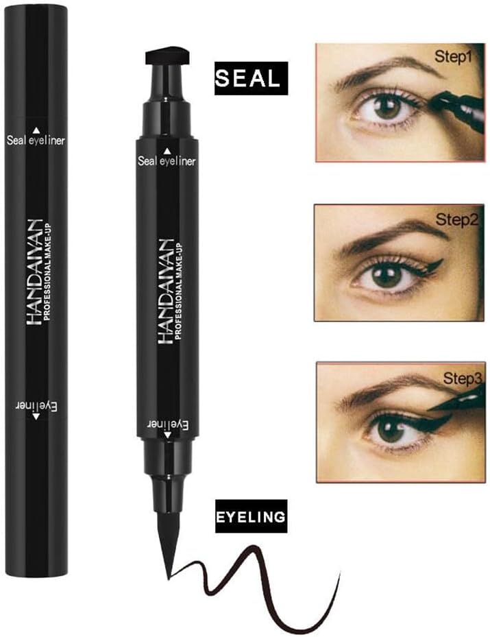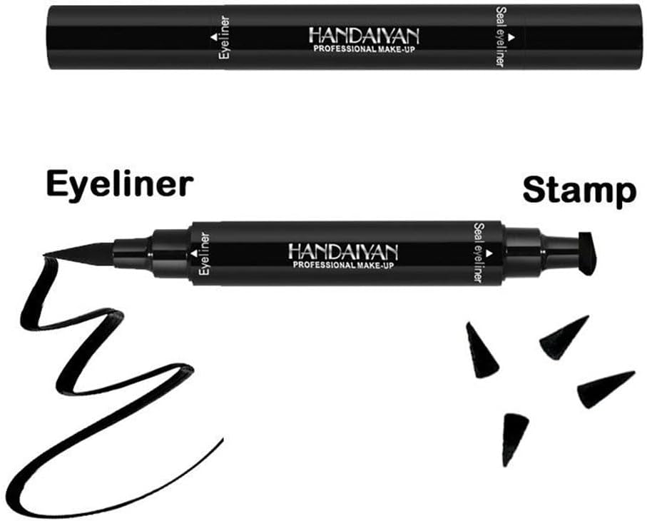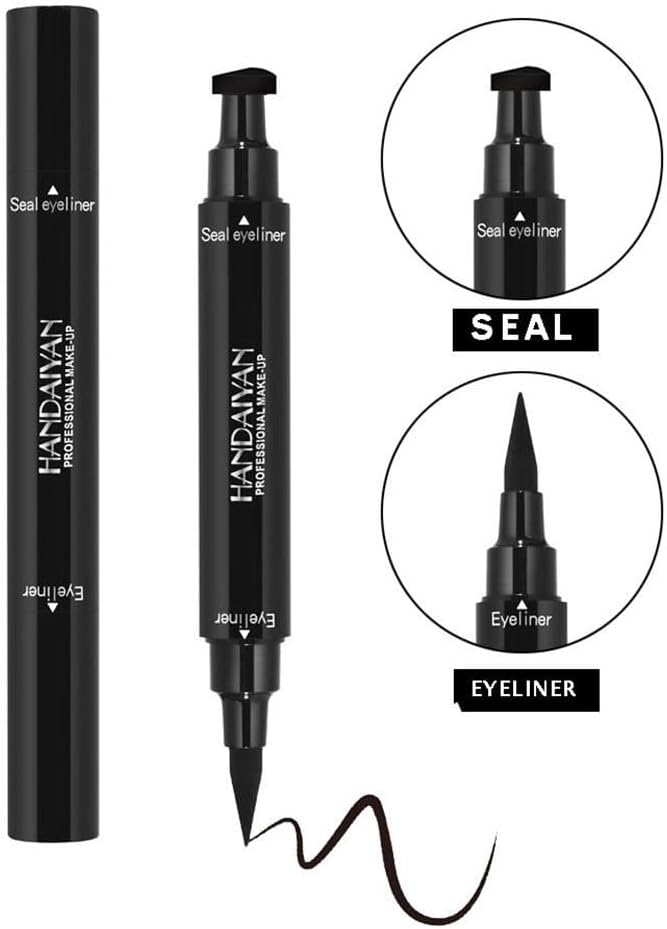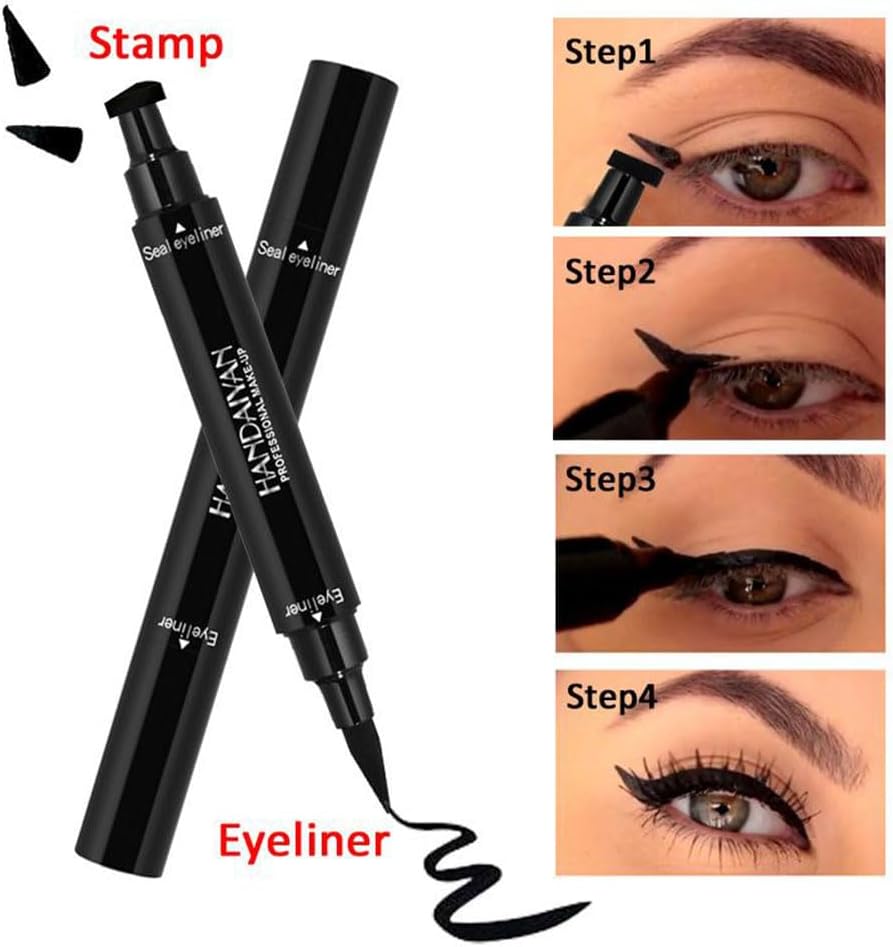 قلم تحديد العين مقاوم للماء 2 في 1، مع طوابع مجنحة لماكياج سهل التطبيق (أسود كلاسيكي)