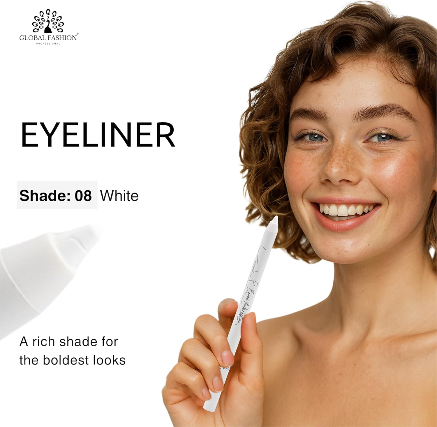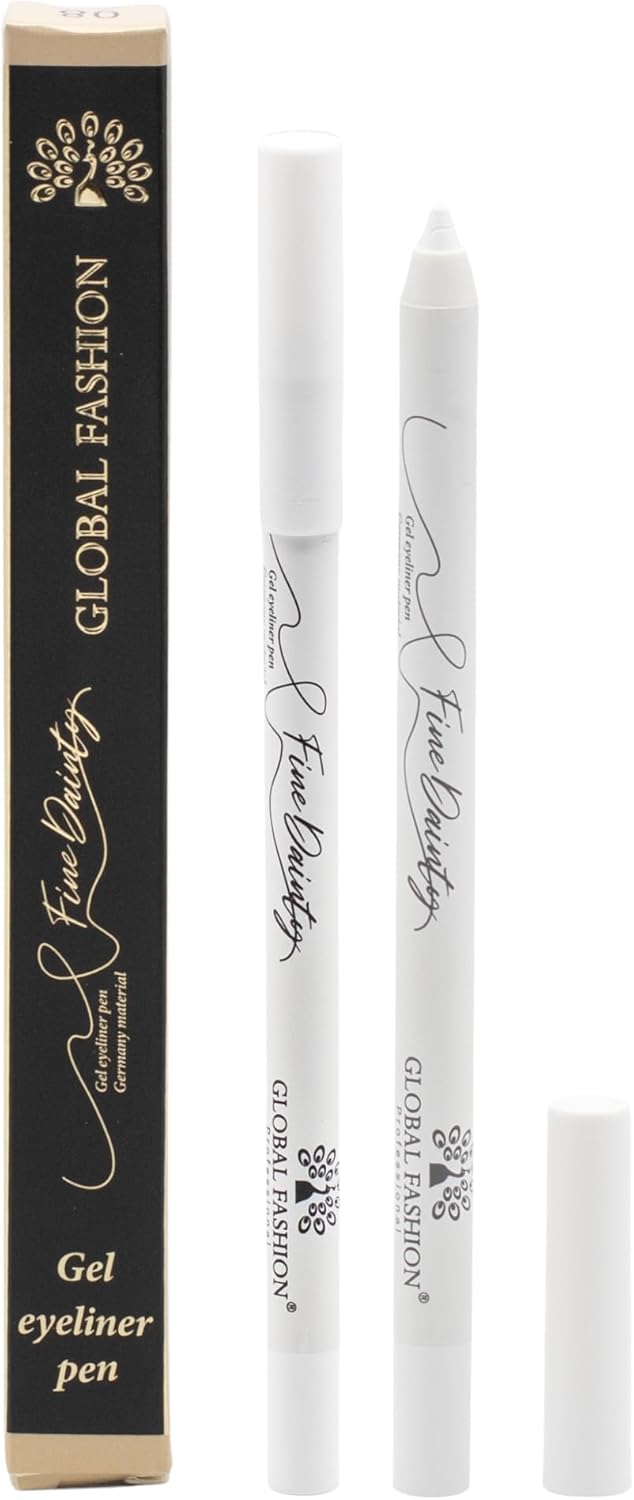 قلم تحديد عيون جل مقاوم للماء بطرف ملتف دقيق 0.2 ملم، كاجال مقاوم للتلطخ، لمسة نهائية غير لامعة، يدوم لمدة 12 ساعة، نباتي وامن على العدسات اللاصقة، عيون حساسة (8 – ابيض)
