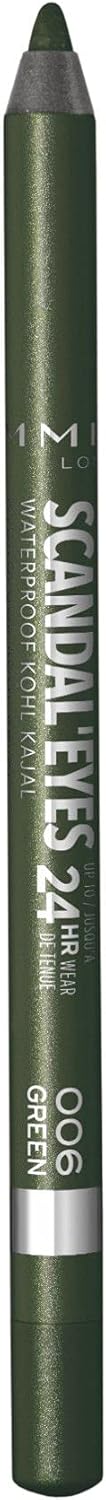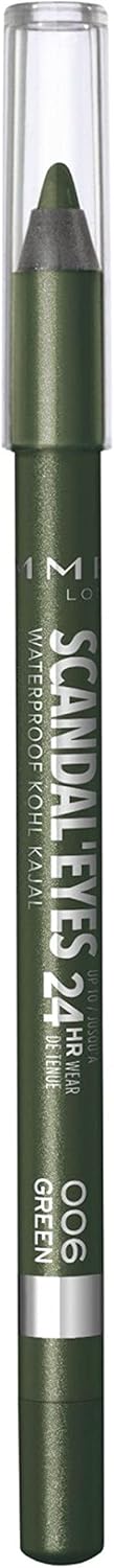 قلم كحل كاجال سكاندال ايز مقاوم للماء من ريميل لندن، لون اخضر داكن مع لمعان – 06 اخضر، 1.3 غرام (0.04 اونصة)