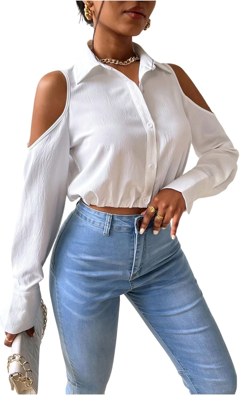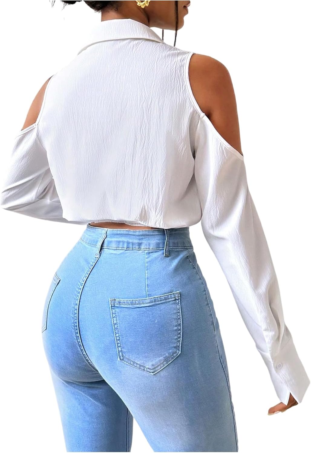شراء قمصان نسائية قصيرة بأكمام طويلة مكشوفة الكتفين من جورجليتر، قمصان أنيقة بياقة وازرار اون لاين من امازون او نون وحراج قمصان نسائية قصيرة بأكمام طويلة مكشوفة الكتفين من جورجليتر، قمصان أنيقة بياقة وازرار