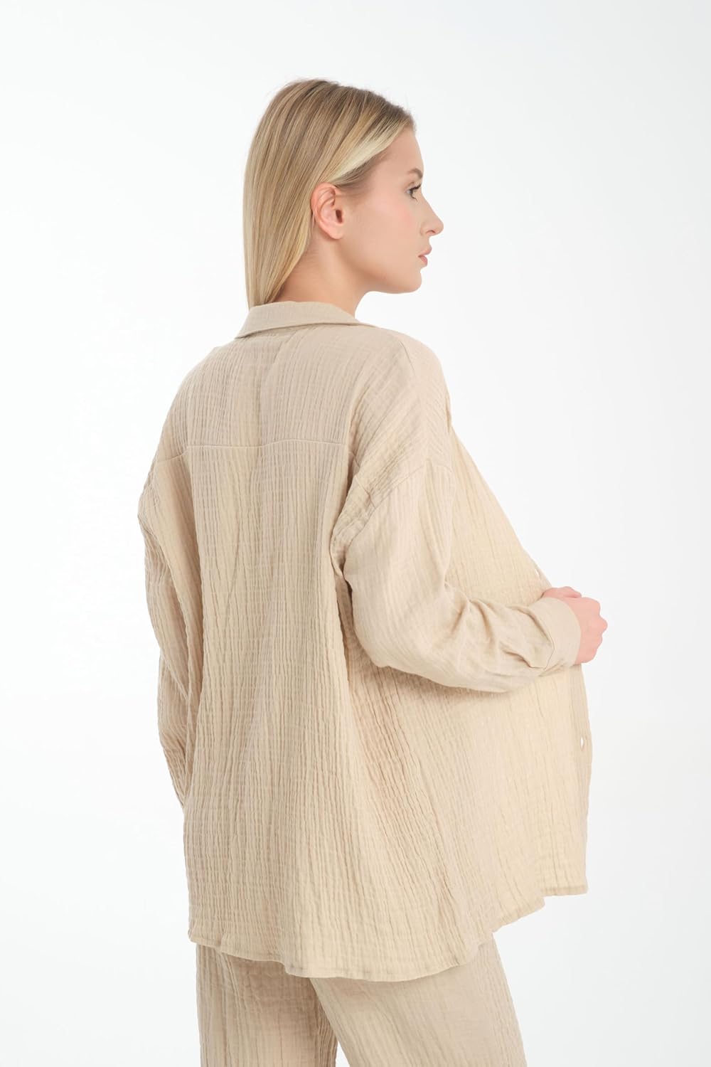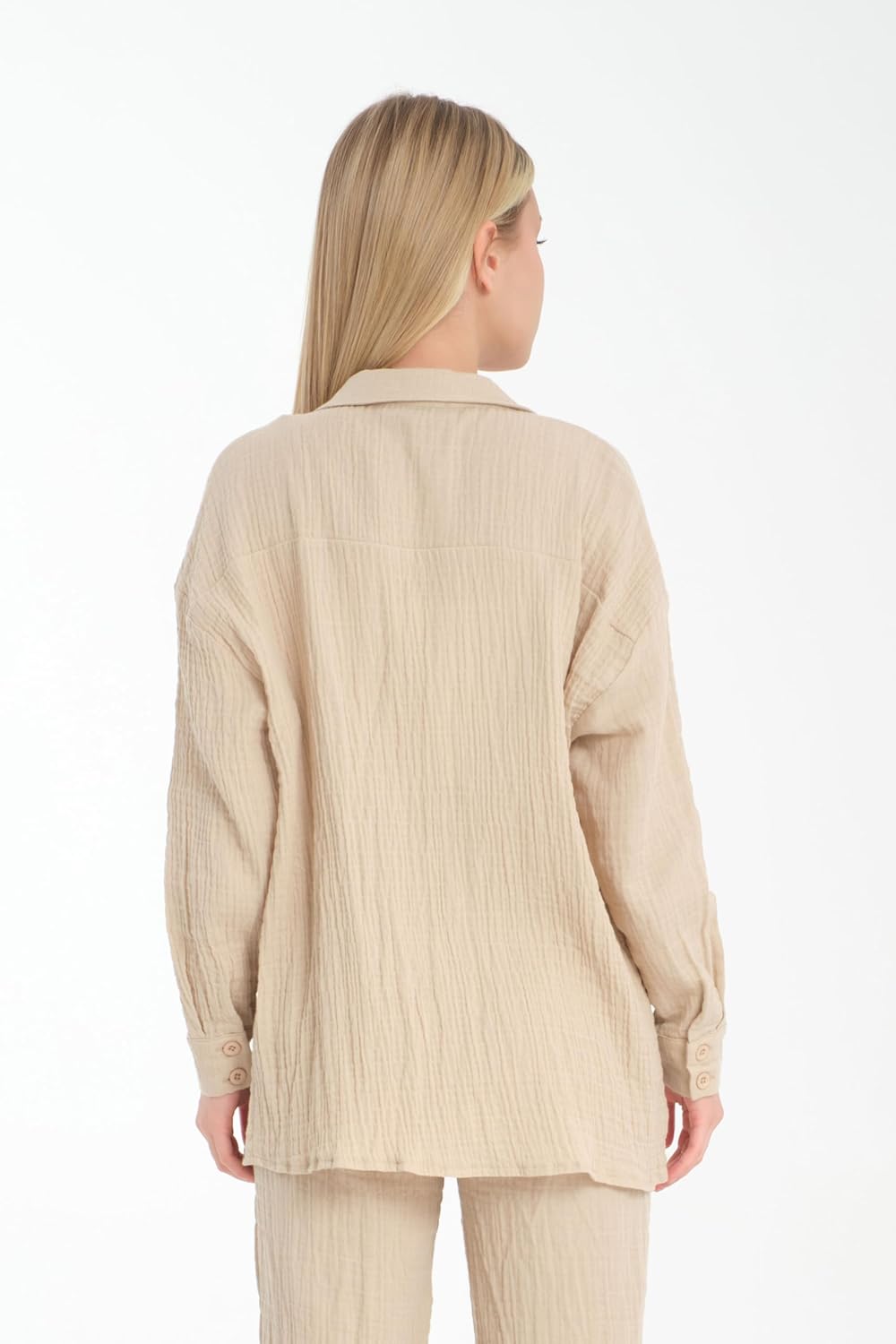 كن أول من يقيم “قميص للنساء من قطن الموسلين بازرار امامية واكمام طويلة، كاجوال بمقاس كبير”