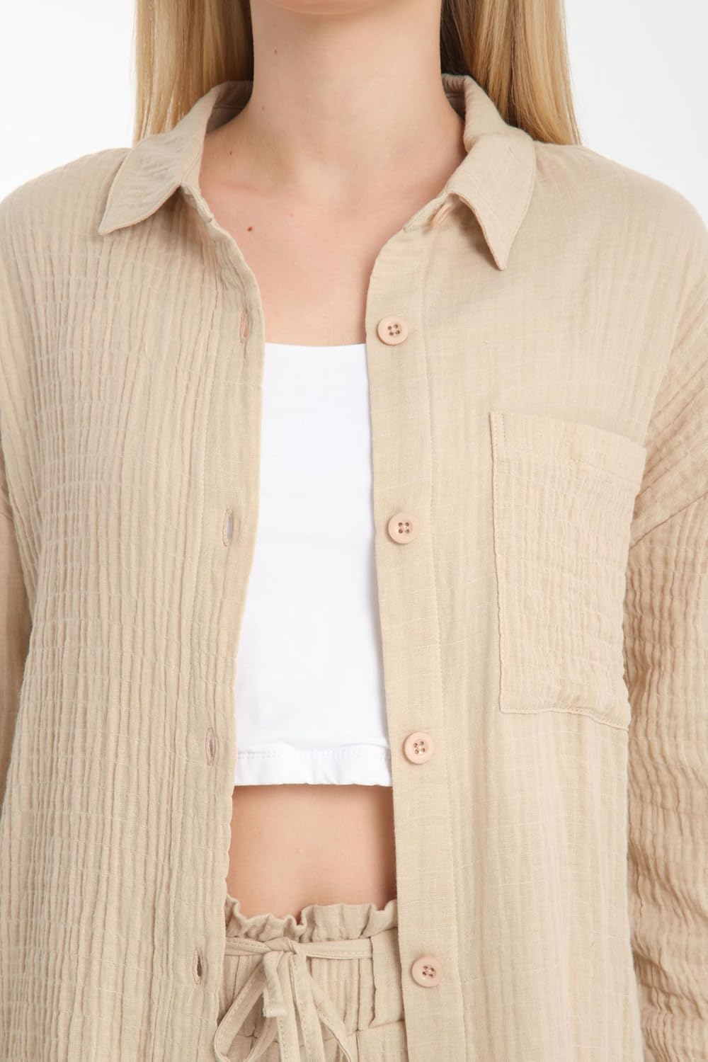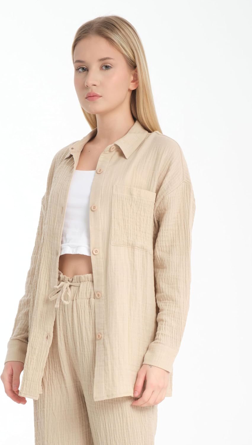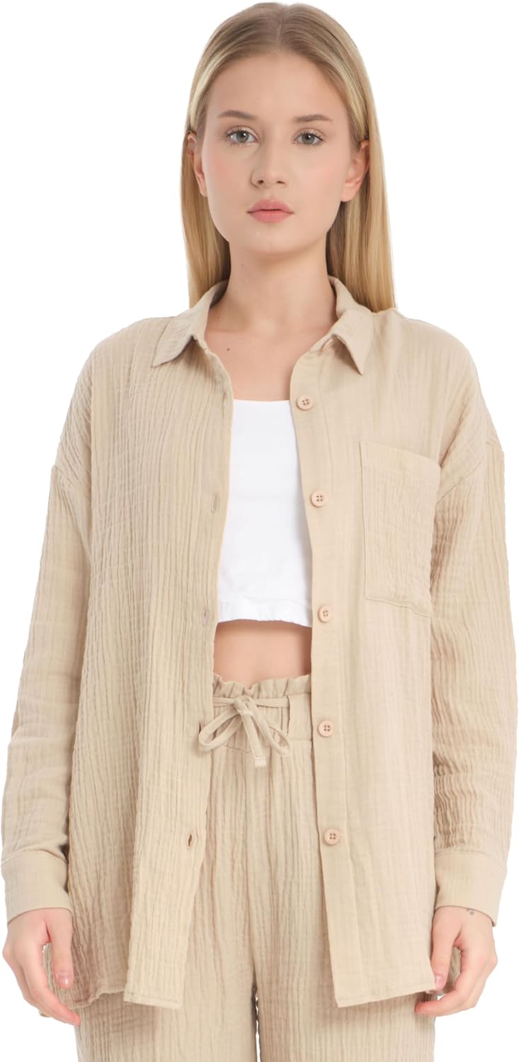 شراء قميص للنساء من قطن الموسلين بازرار امامية واكمام طويلة، كاجوال بمقاس كبير اون لاين من امازون او نون الامارات قميص للنساء من قطن الموسلين بازرار امامية واكمام طويلة، كاجوال بمقاس كبير