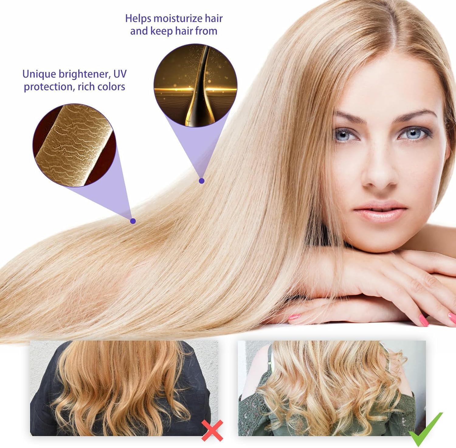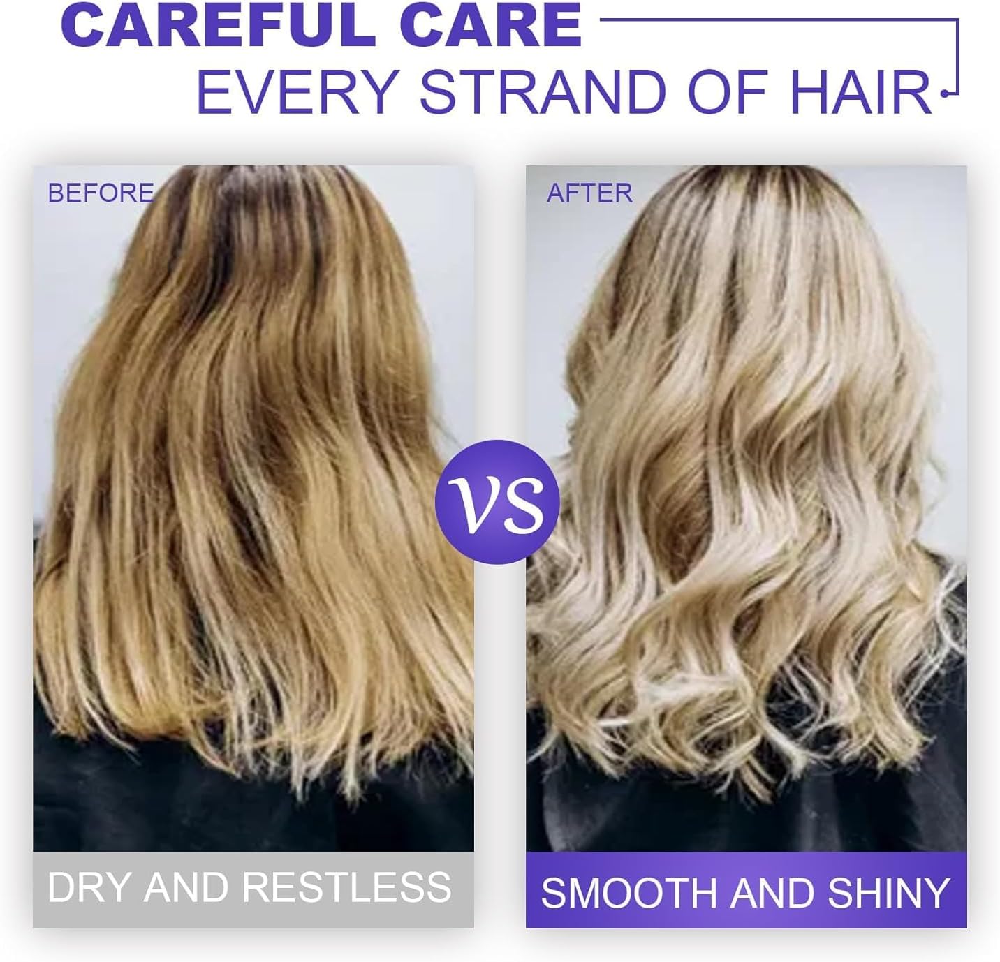 تركيبة كيراتين فريدة: التونر الأرجواني للشعر الأشقر يجعل الشعر أقل تجعدًا وأسهل في التصفيف ويبدو أكثر سلاسة. لا مزيد من القتال اليومي ضد التجعد والانسداد مع قناع الشعر فائق الترطيب!