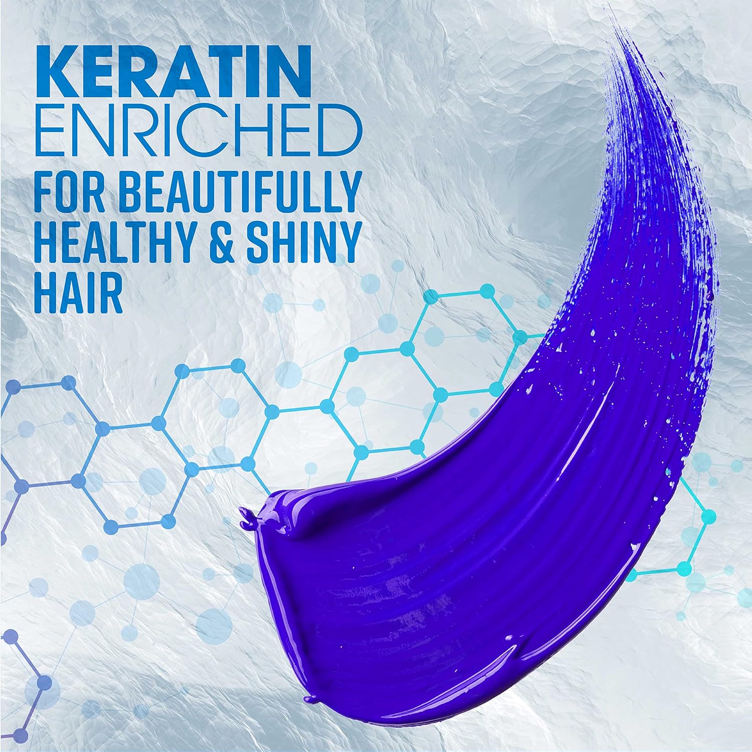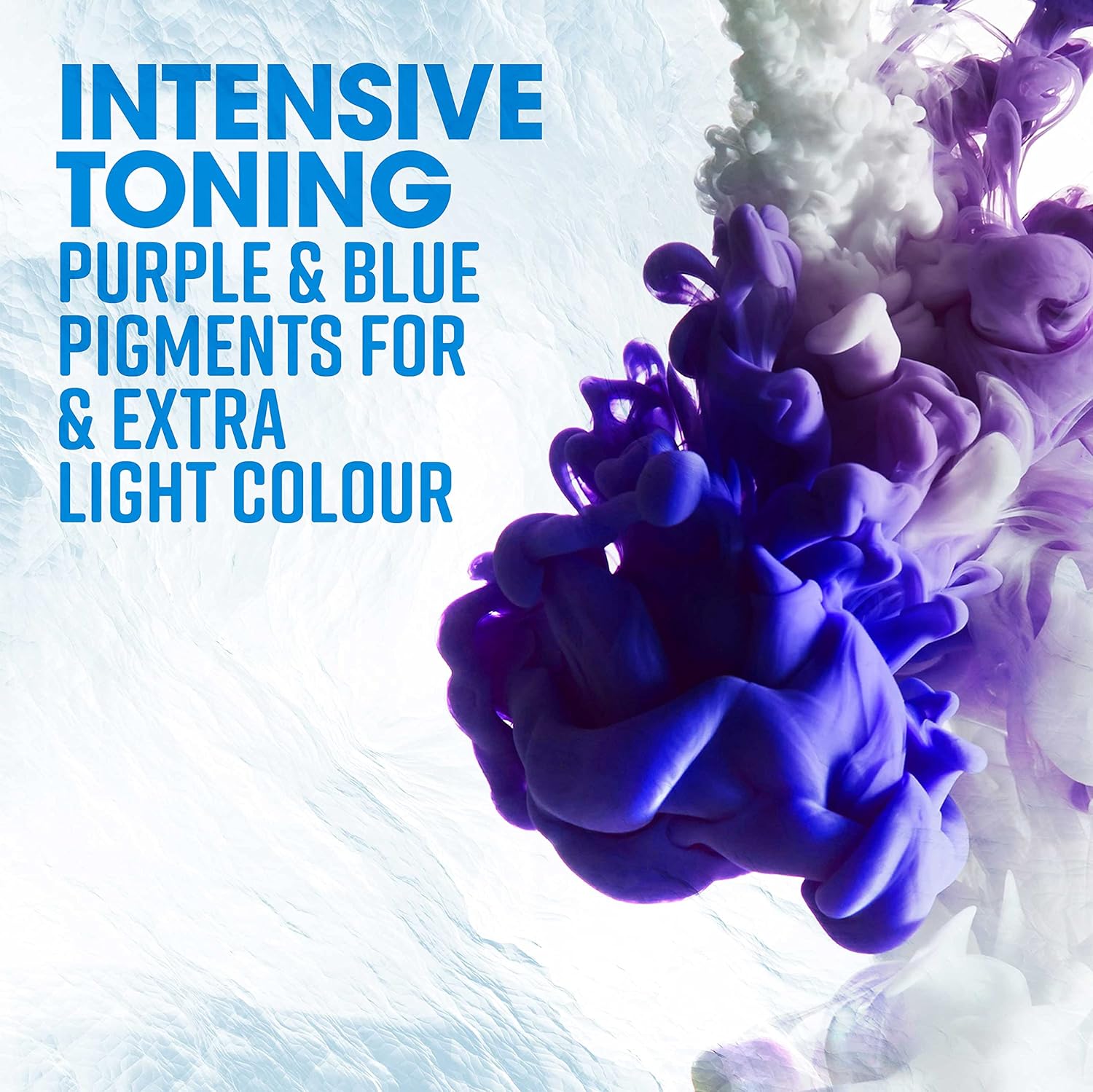 كيف يعمل السحر الجليدي؟ تعمل الأصباغ الأرجوانية والزرقاء على كل من اللونين الأصفر والبرتقالي مما يترك لك أشقر بلاتيني ثلجي ساطع للغاية وخفيف. لن يحول لونك فحسب، بل يحتوي أيضًا على تركيبة كيراتين متطورة لترك شعرك ناعمًا وحريريًا ومغذيًا بعمق.