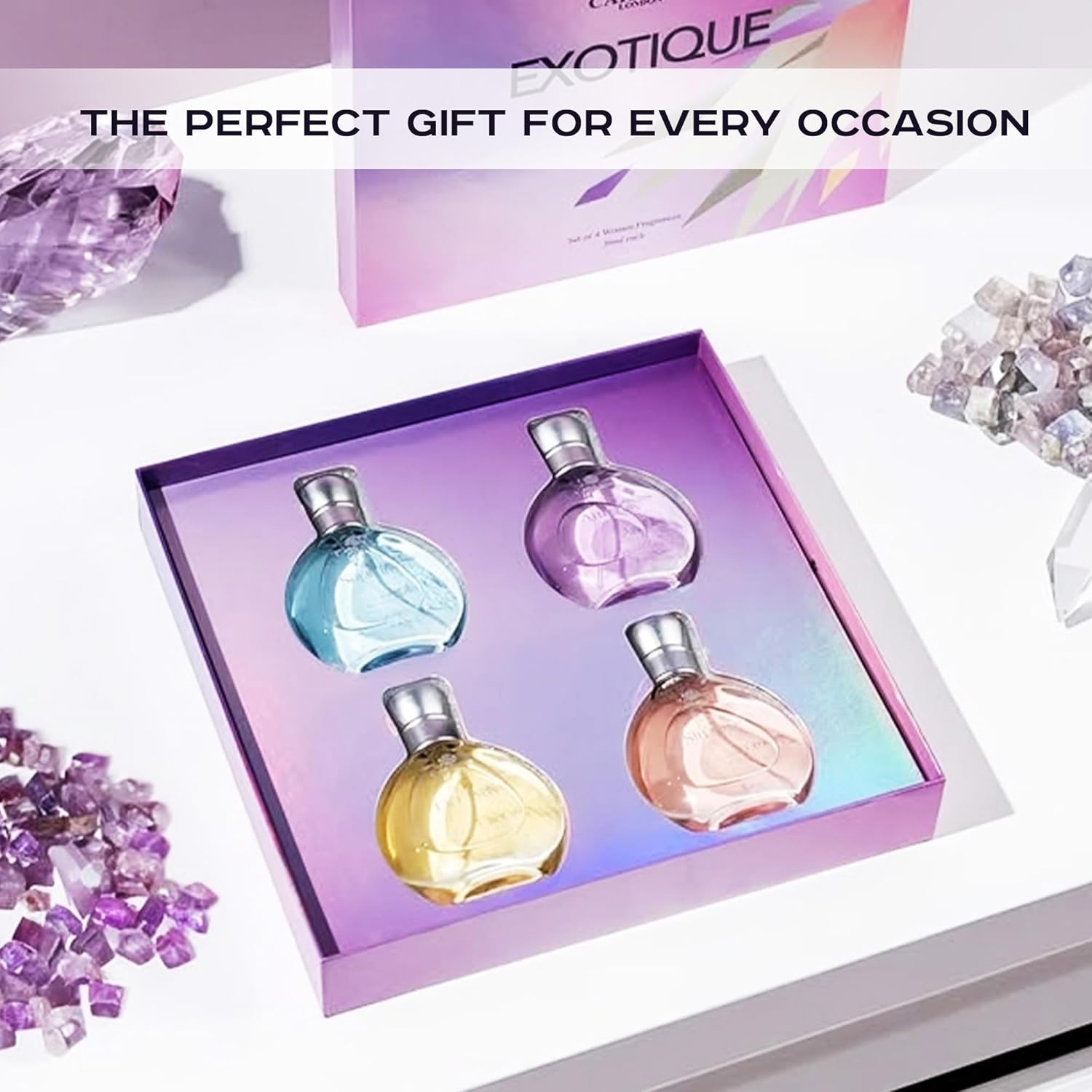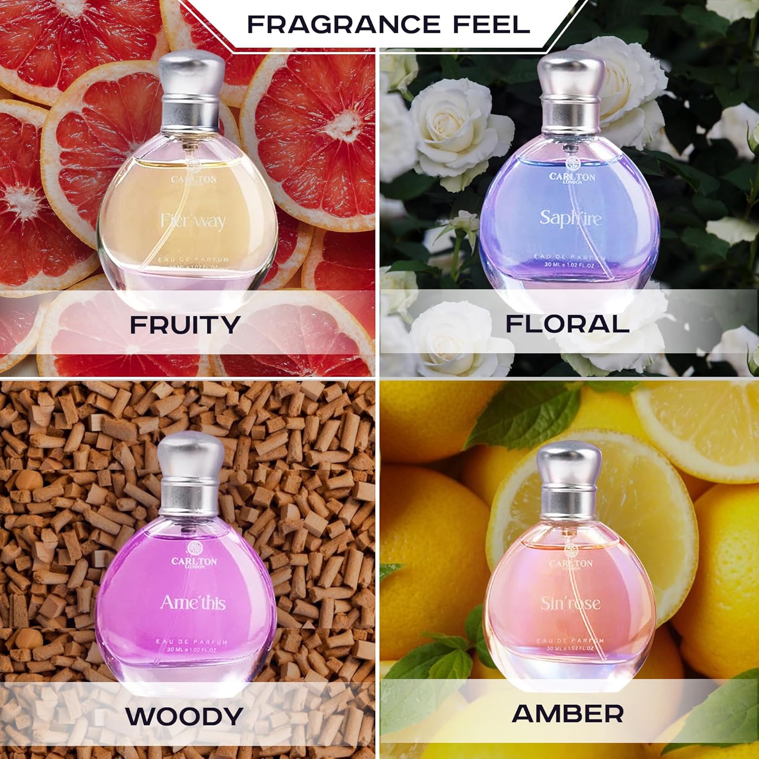 كارلتون لندن مجموعة هدايا اكسوتيك مكونة من 4 عطور فاخرة – 30 مل لكل عطر اي او دي بارفان برائحة البرتقال والارز والعسل والورد او دو بارفان فاخر للفتيات والسيدات | افضل مجموعة هدايا للنساء
