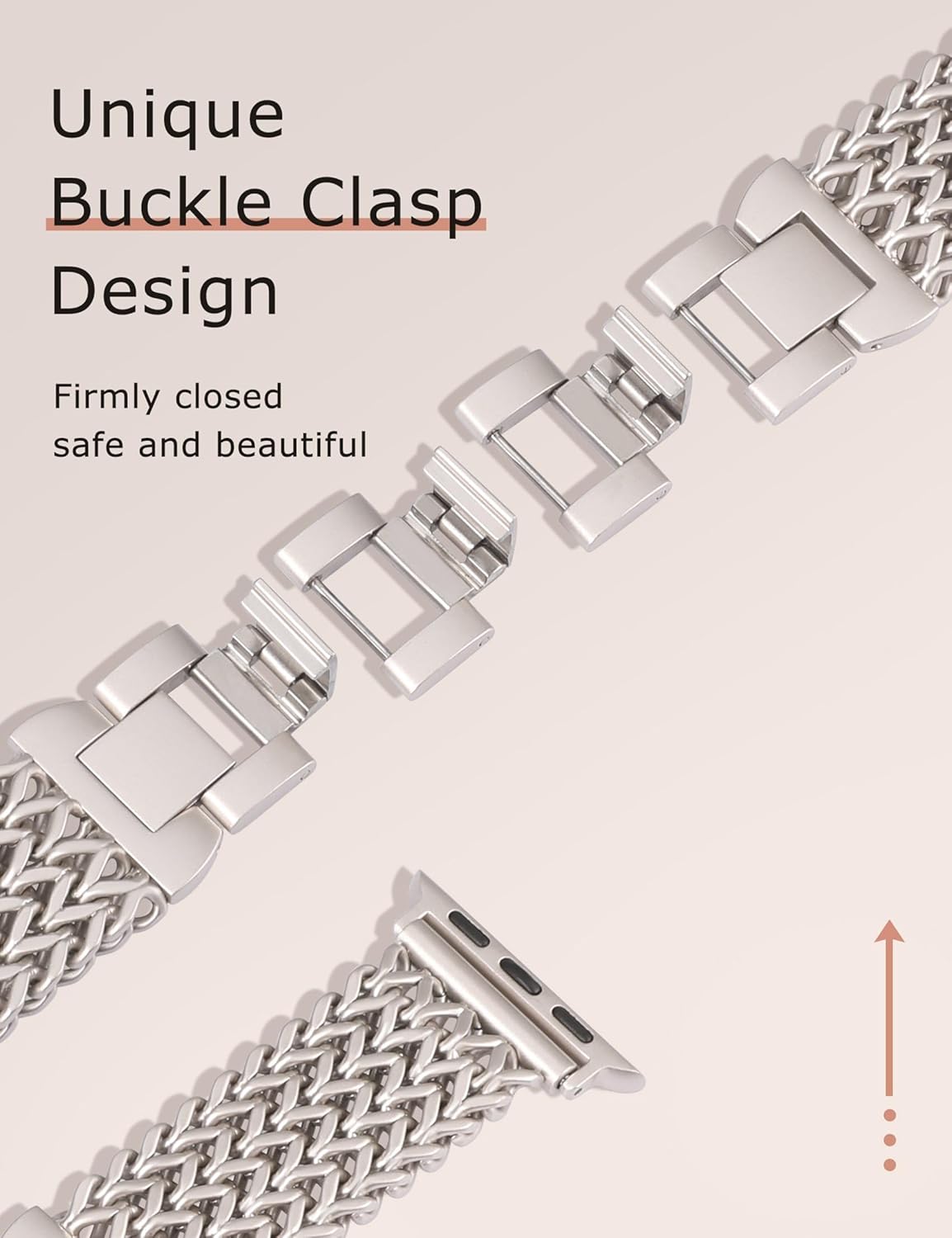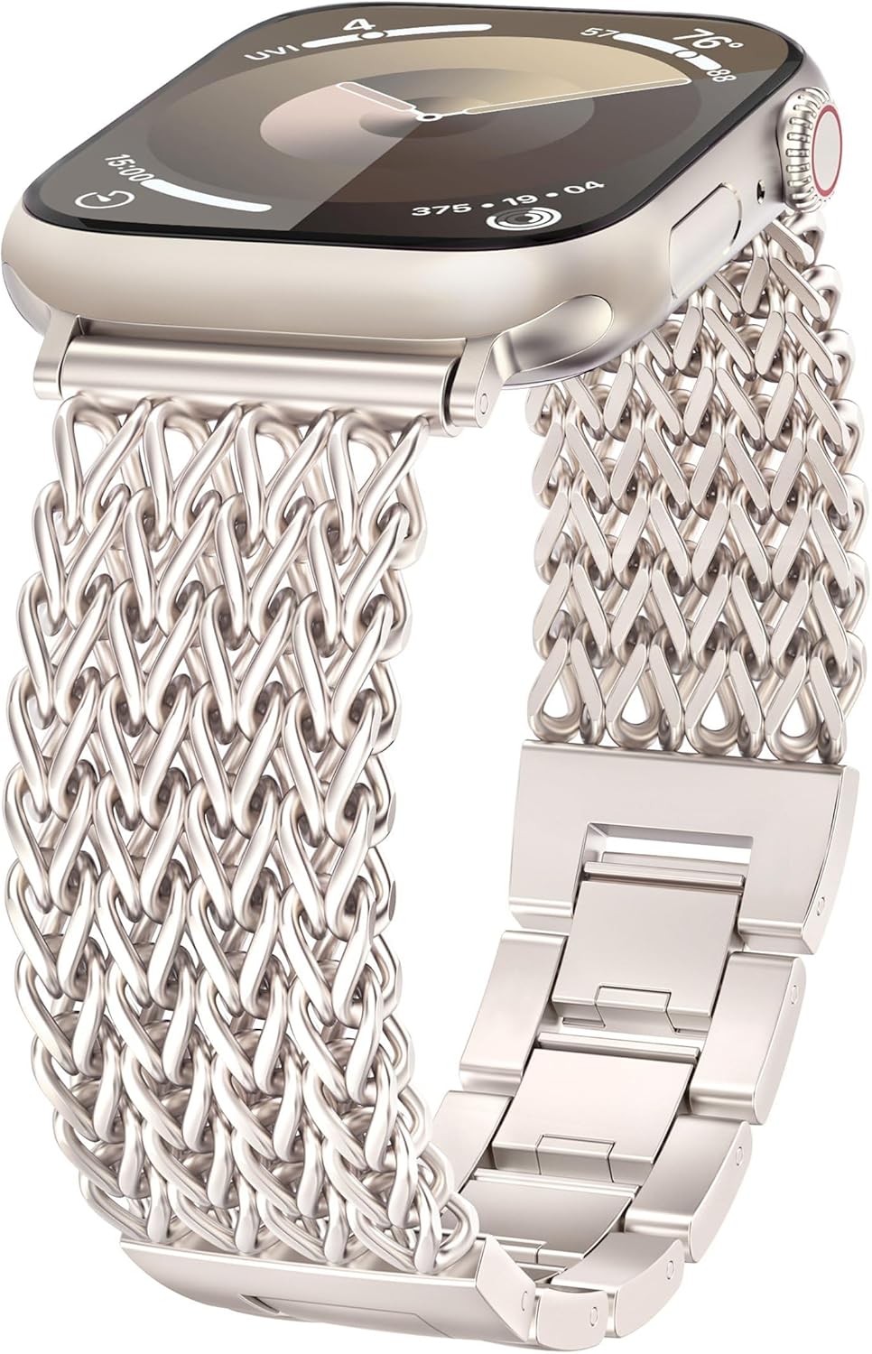 كاستويف سوار سلسلة ذهبية من الستانلس ستيل متوافق مع ساعة ابل 42/44/45/46/49 ملم، سوار معدني فاخر لسلسلة اي ووتش 10 9 8 7 6 5 4 3 2 1 الترا اس اي (ستارلايت)