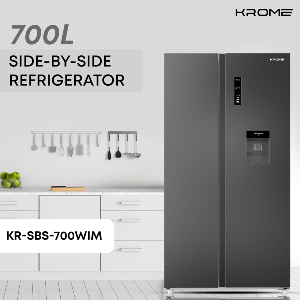 شراء كروم ثلاجة اجمالية 700 لتر جنبا الى جنب مع موزع مياه، تدفق هواء متعدد، شاشة LED، ضاغط عاكس، منبه باب، بدون تجميد، صانع ثلج ملفوف، اسود، ضمان ضاغط 10 سنوات، KR-SBS 700WIM اون لاين من امازون او نون وحراج كروم ثلاجة اجمالية 700 لتر جنبا الى جنب مع موزع مياه، تدفق هواء متعدد، شاشة LED، ضاغط عاكس، منبه باب، بدون تجميد، صانع ثلج ملفوف، اسود، ضمان ضاغط 10 سنوات، KR-SBS 700WIM