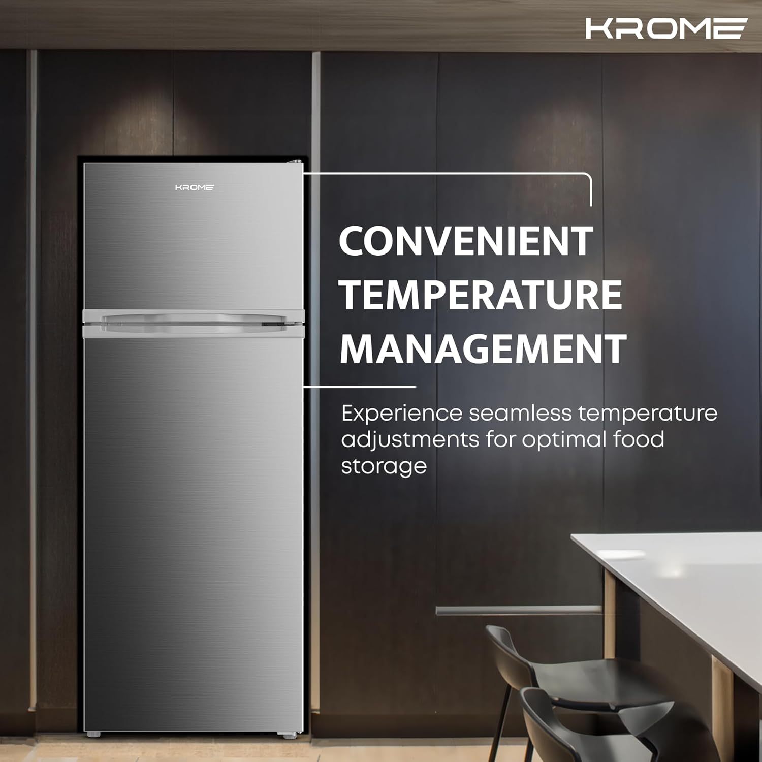 كروم ثلاجة 270 لتر تثبت على الاعلى بباب مزدوج مع نظام تدفق هواء موحد، تبريد قوي، موفرة للطاقة، تخزين قابل للتعديل، لون اينوكس، ضمان ضاغط 10 سنوات، KR-RDC 270IH