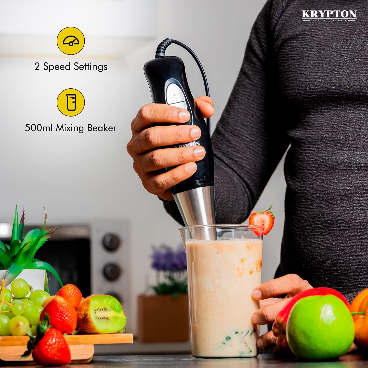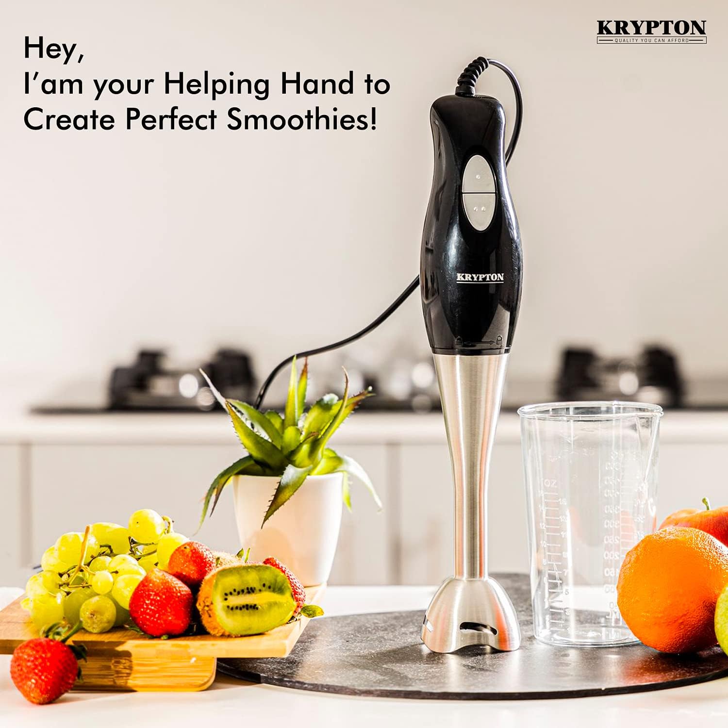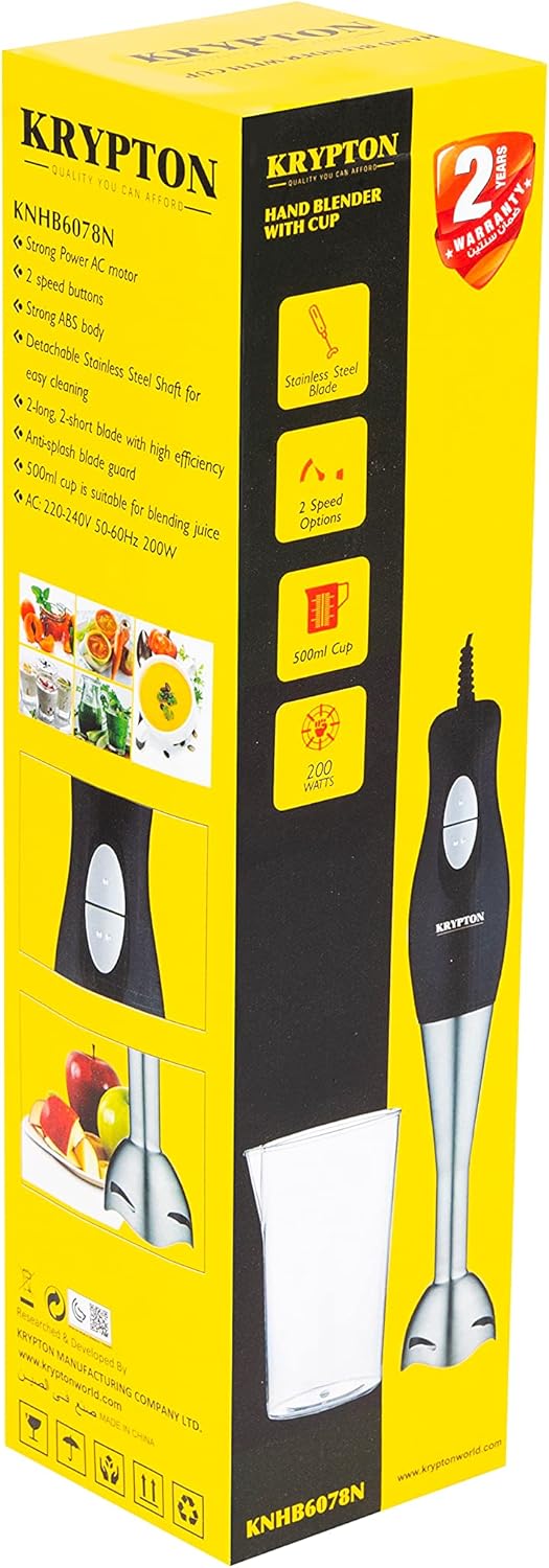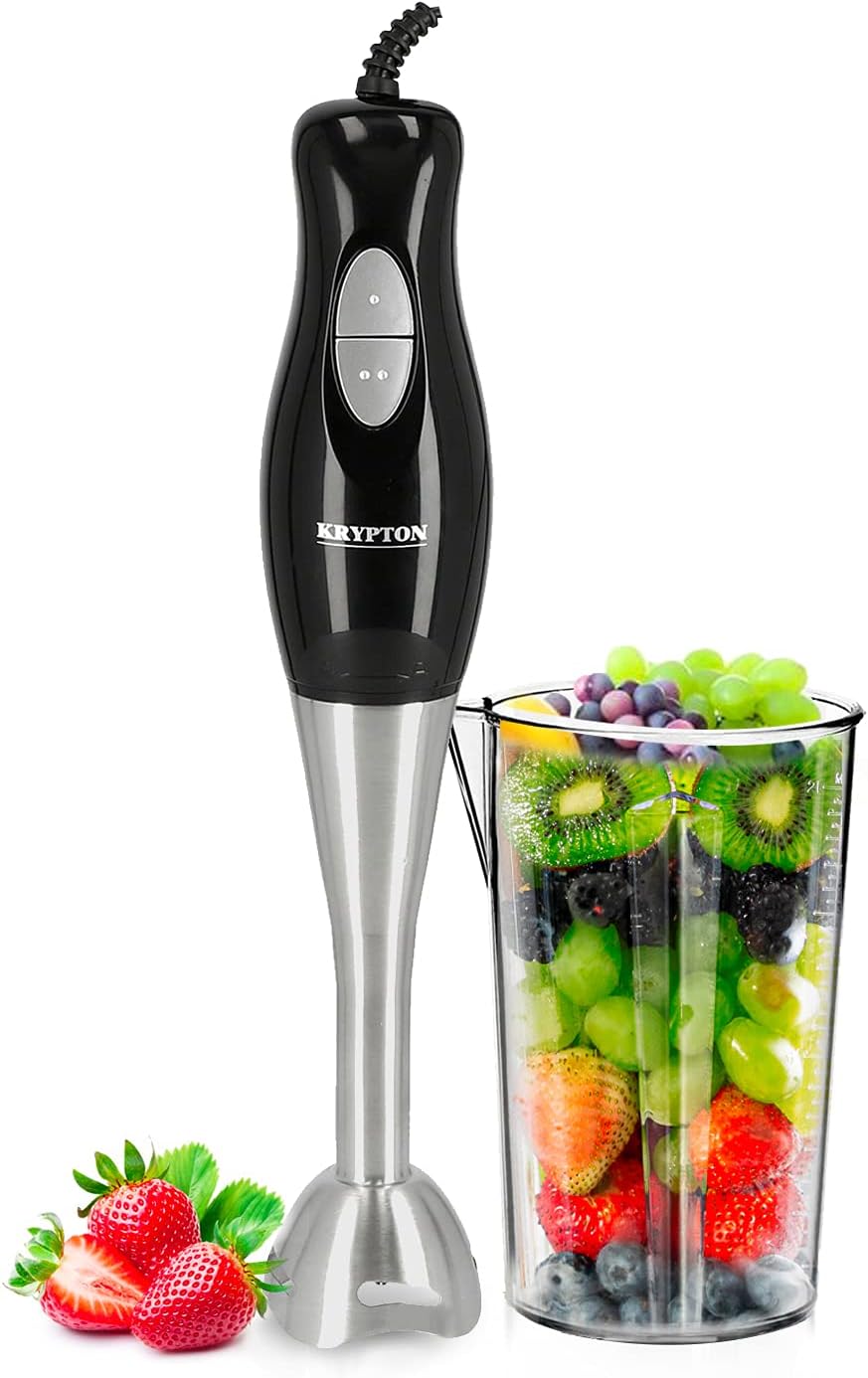 كريبتون خلاط يدوي قوي 200 واط | خلاط يدوي للغمر | ستانلس ستيل | كوب 500 مل | مثالي للعصائر والمخفوقات وطعام الاطفال والحساء وطحن المكونات والخضروات والفواكه – ضمان لمدة عامين