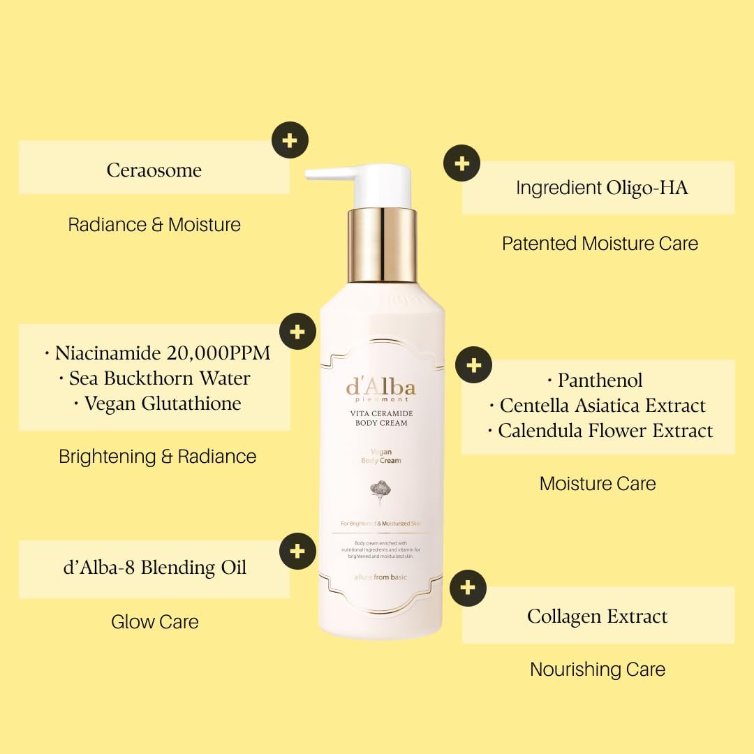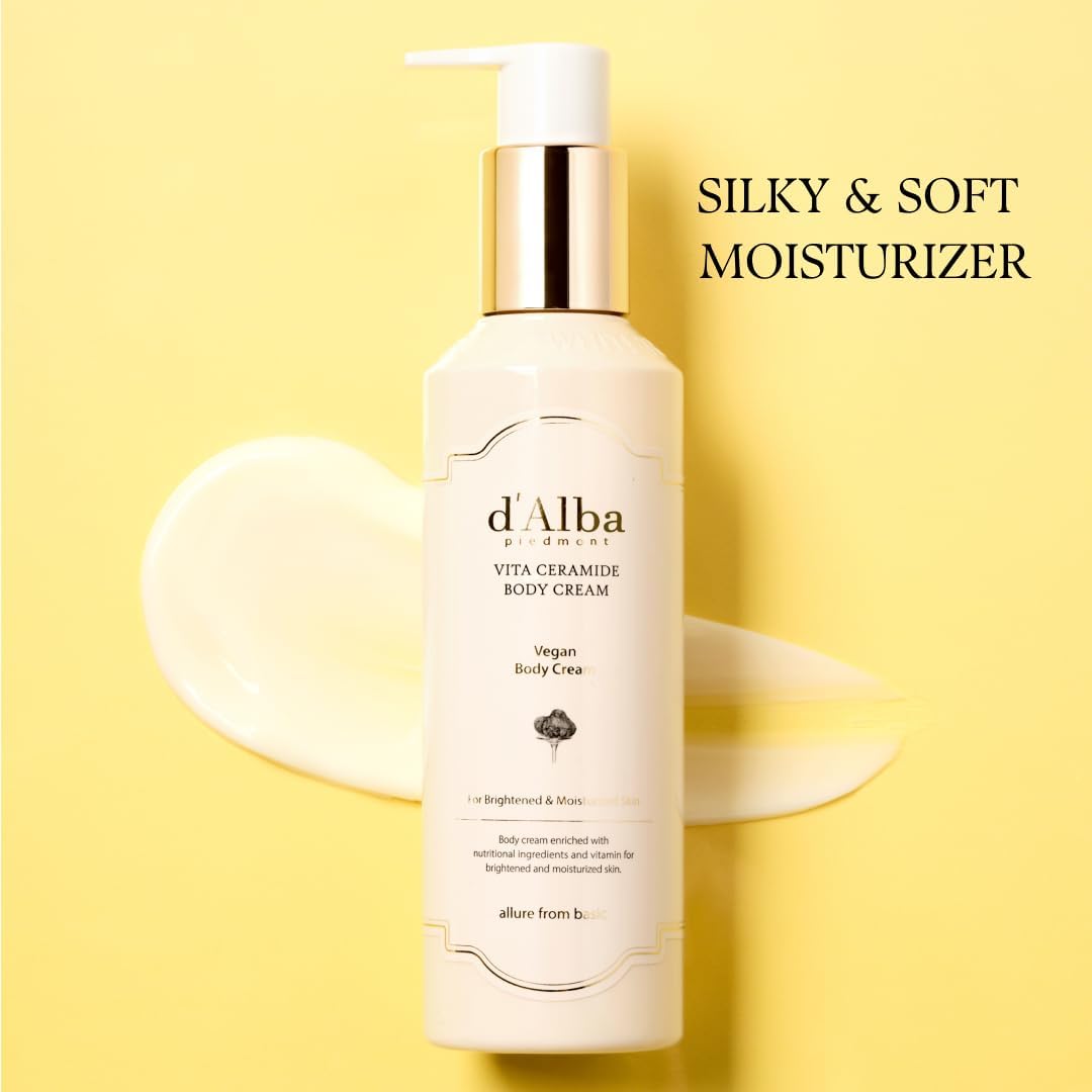 عناية حريرية وناعمة ومرطبة ومشرقة: لوشن جسم كريمي كثيف يذوب بسلاسة في البشرة، مما يوفر ترطيبًا عميقًا وتوهجًا مشرقًا.