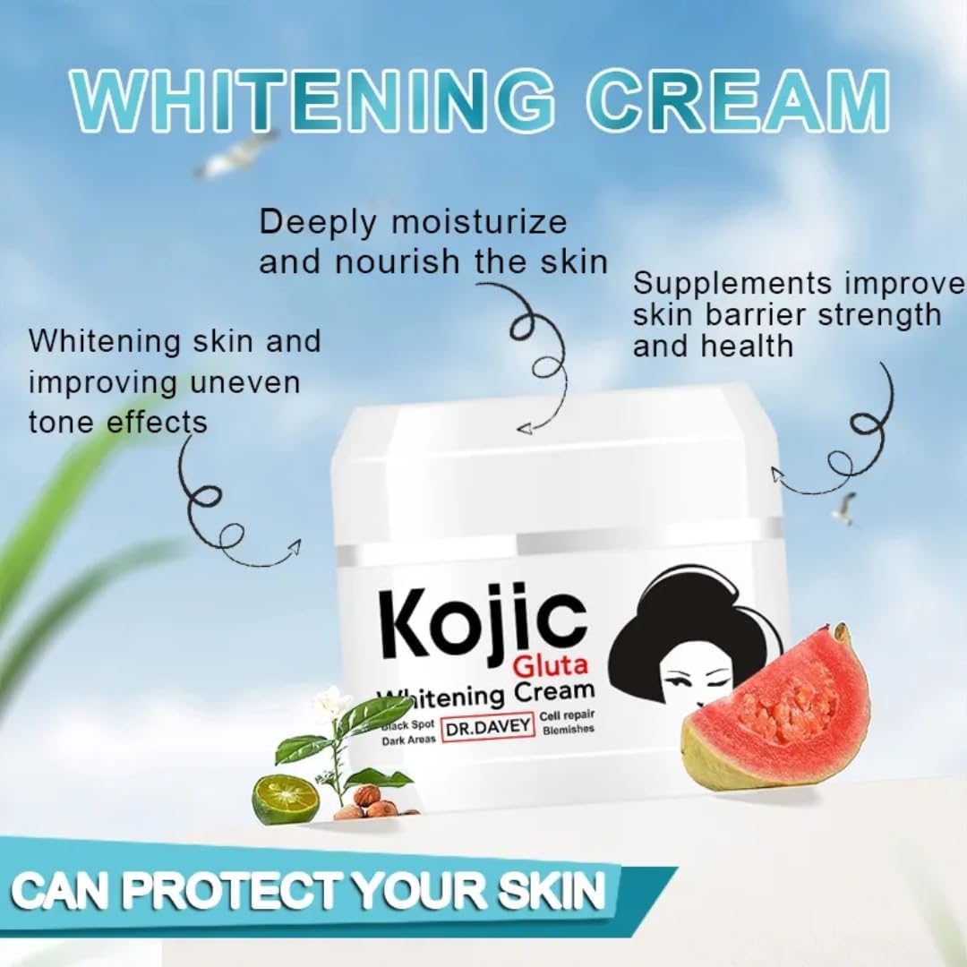 قم بتفتيح لون بشرتك وتوحيده مع كريم تبييض حمض كوجيك، تم تركيبه خصيصًا لتفتيح البقع الداكنة وتغير اللون. غني بالجلوتاثيون والمكونات المرطبة، هذا الكريم المغذي يرطب بعمق مع تعزيز البشرة الناعمة والمشرقة والصحية.