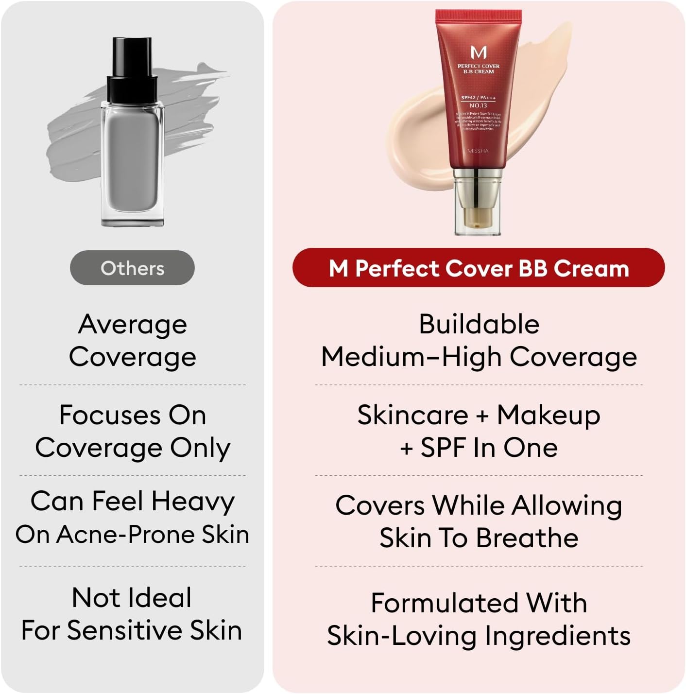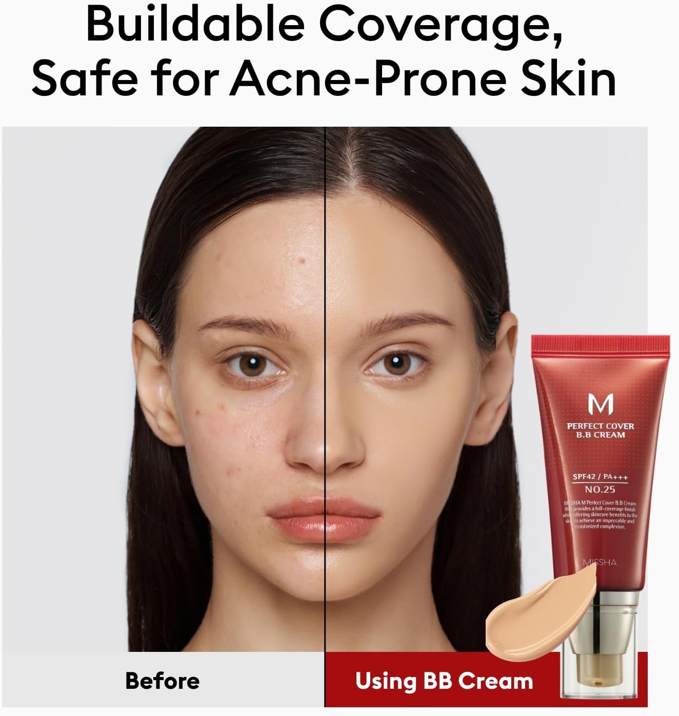 كريم تغطية مثالية BB من Missha M بمعامل وقاية من أشعة الشمس 42 PA++، تم التحقق من كود أمازون للتأكد من الأصالة، 50 مل، إخفاء العيوب والهالات السوداء، حماية من الأشعة فوق البنفسجية (#25 بيج دافئ)