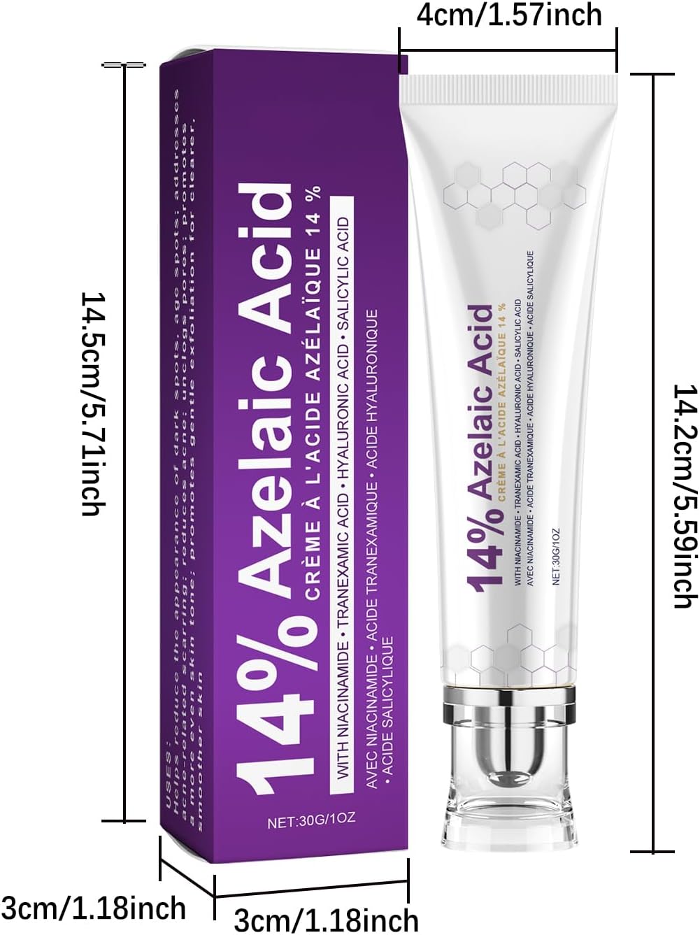 كريم حمض الأزيليك 14%، كريم حب الشباب، يخفف الاحمرار للوجه، كريم العناية بالبشرة لتقليل الاحمرار، كريم حمض الأزيليك الممتاز، يمنع ظهور حب الشباب، العناية بجمال البشرة والوجه