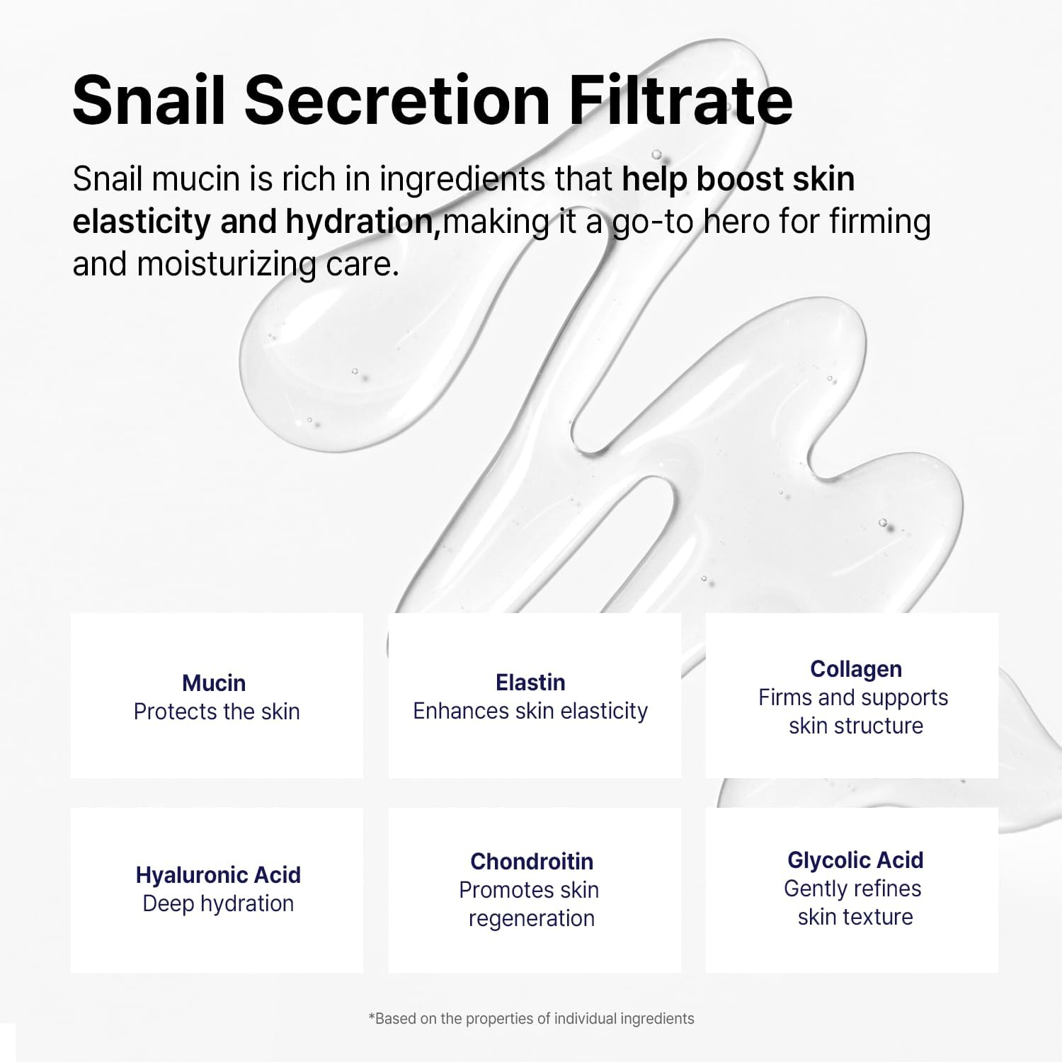 [فلتر موسين الحلزوني] رمز محبوب لمرونة البشرة، فلتر موسين الحلزون غني بالمكونات المغذية مثل الميوسين والكولاجين والإيلاستين لدعم بشرة أكثر تماسكًا وصحة.
