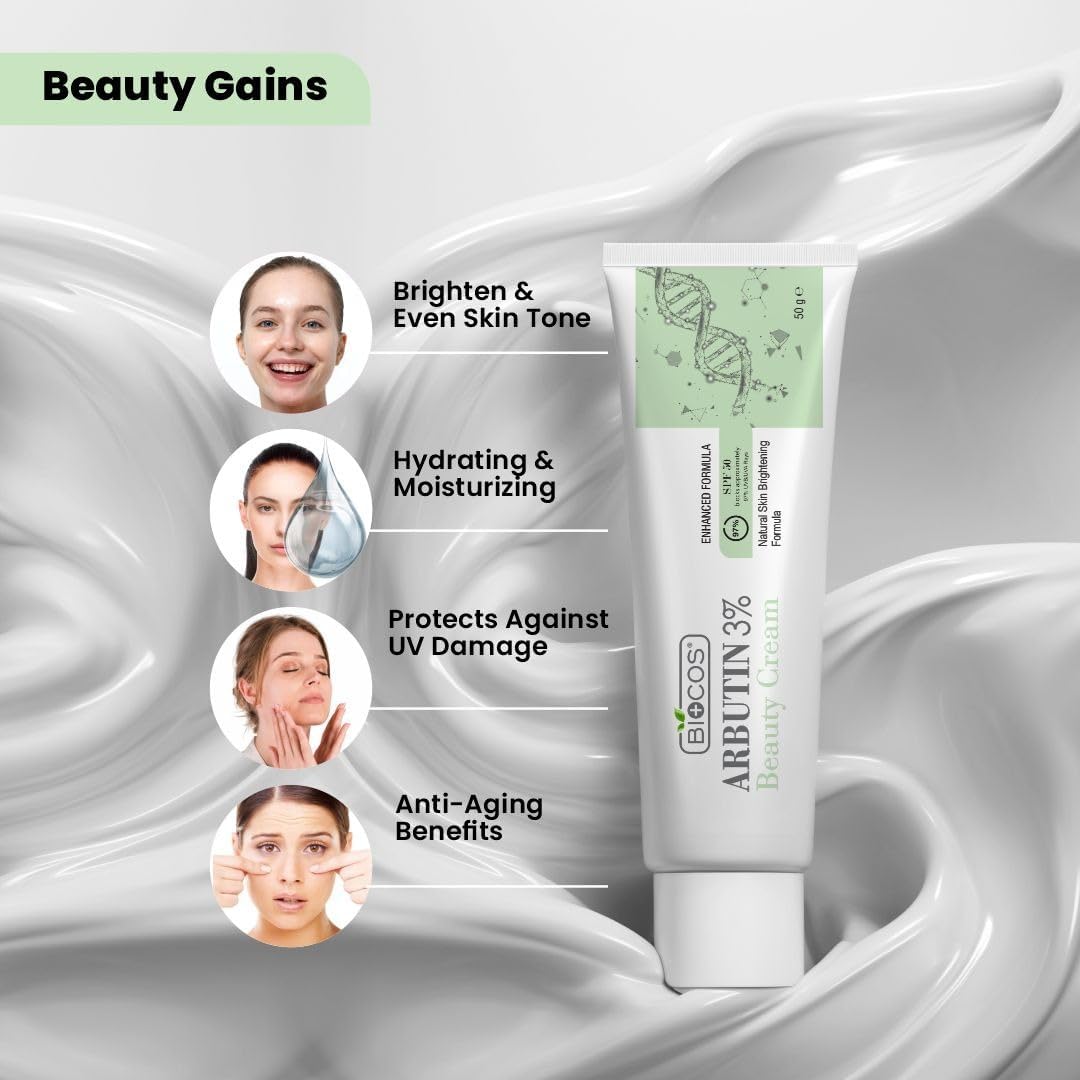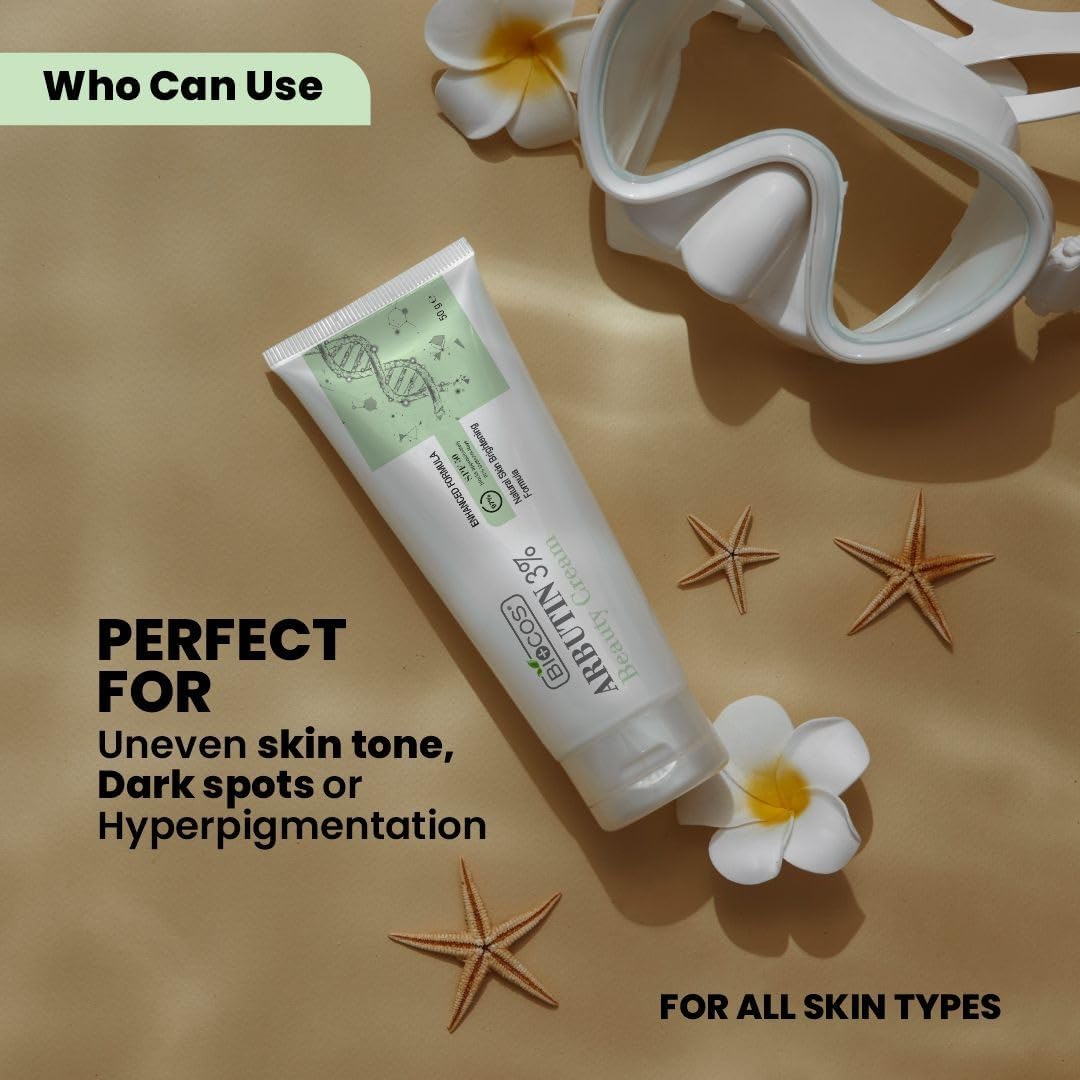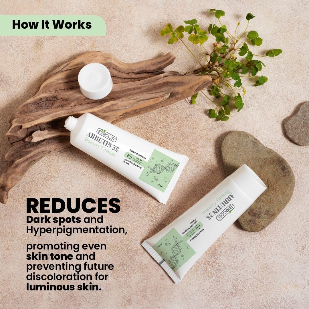 معالجة البقع الداكنة: هذا الكريم مصنوع من 3% أربوتين للمساعدة في تقليل مظهر البقع الداكنة وفرط التصبغ ولون البشرة غير المتساوي. استخدمه يوميًا لتلاشي البقع وعلامات تسمير الشمس بلطف، مما يكشف عن بشرة أكثر نعومة وتبدو أكثر وضوحًا وتوهجًا بشكل طبيعي.