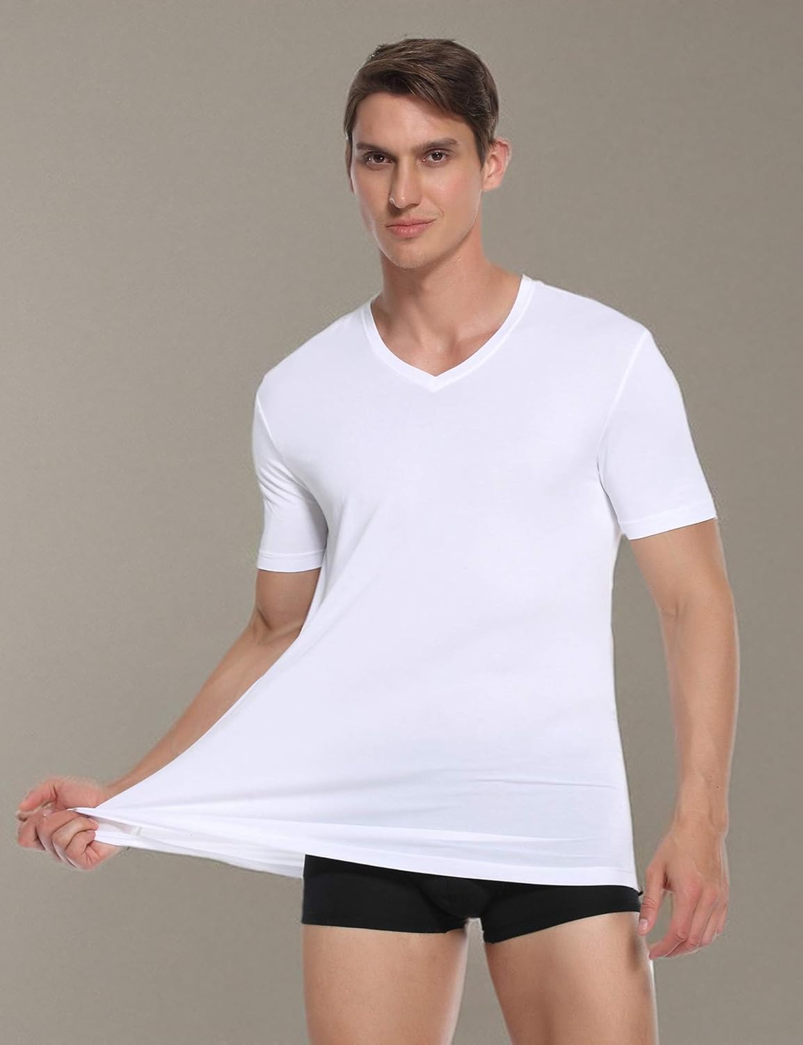كولورفول ليف قمصان داخلية للرجال برقبة دائرية ضيقة واكمام قصيرة من الخيزران، عبوة من 3 قطع