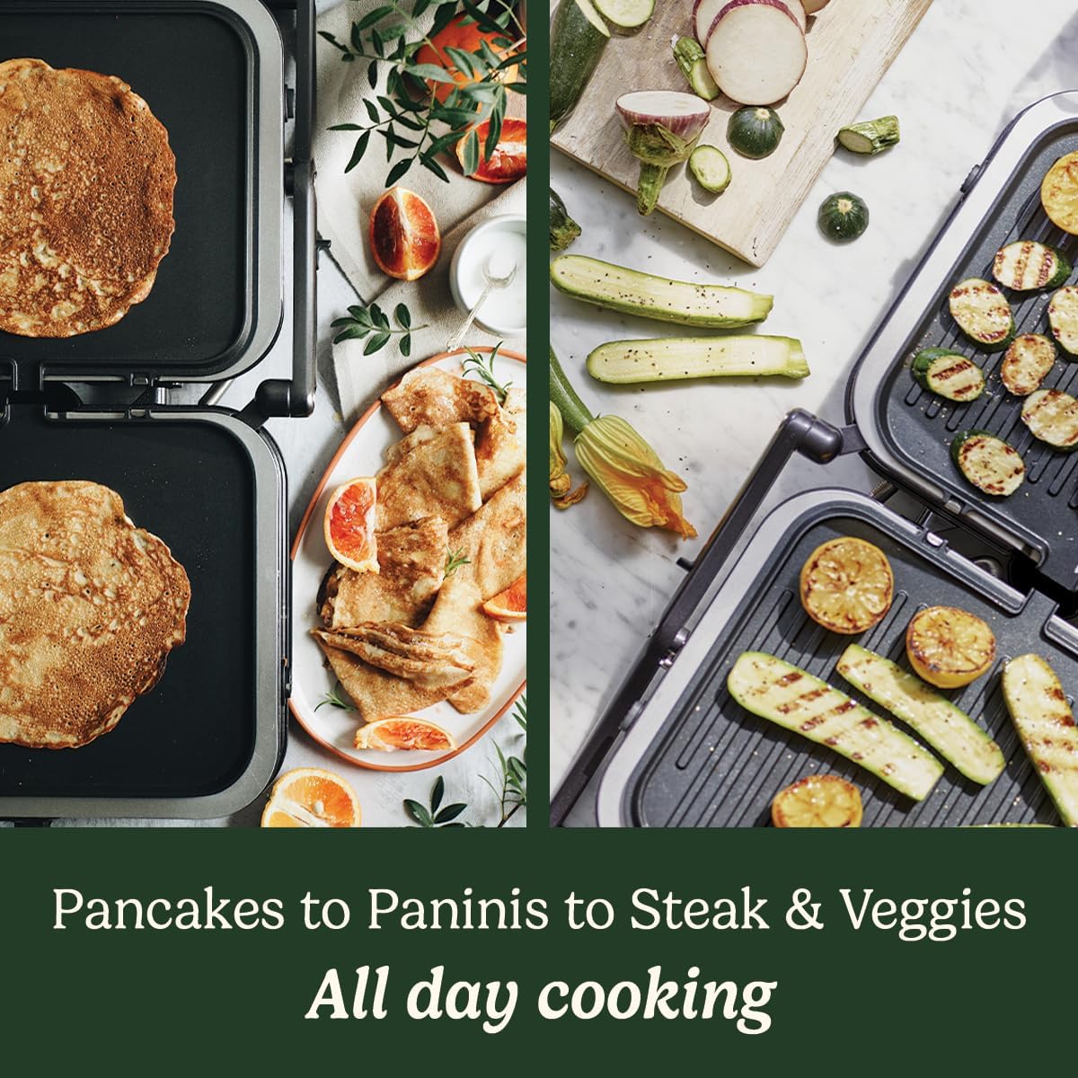 يمكن استخدامها كشواية اتصال لطهي أسرع أو فتحها بشكل مسطح للحصول على كميات أكبر ومكونات رقيقة.