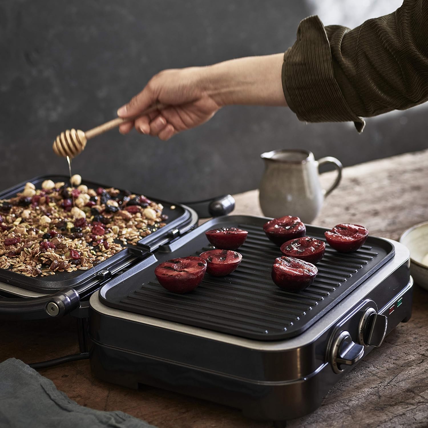 كويزنارت شواية وشواية مع اطباق قابلة للازالة من ستايل كوليكشن، رمادي داكن