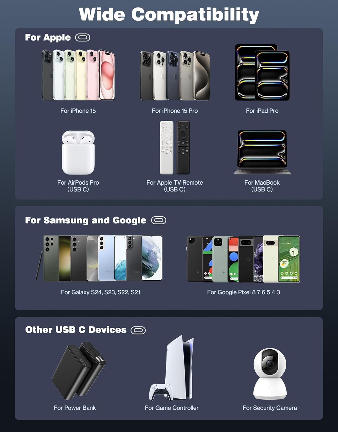 توافق مثالي: تم تصميم كيبل تشغيل السيارة اي مانجو لكاربلاي لتوصيل ايفون 15 16 16e 17 جميع السلاسل مع موصل يو اس بي سي، لايباد 11 10 برو 12.9 انش (الجيل الثالث والرابع والخامس)، 11 انش (الجيل الأول والثاني والثالث)، ميني الجيل السادس، واير الجيل الرابع؛ يضمن توافقًا سلسًا مع جهازك الأجهزة والأجهزة جميع ميزات كار بلاي دون عناء