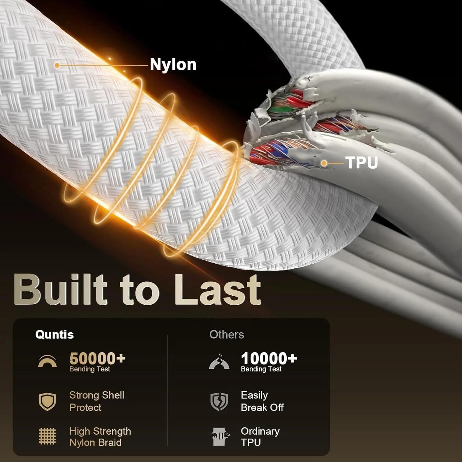 حبل قماشي منسوج ممتاز – قوي ومتين مصنوع من نسيج خارجي منسوج عالي القوة يقاوم التمدد والاهتراء والكسر. يوفر التصميم المنسوج المرن متانة فائقة مقارنة بالكابلات البلاستيكية القياسية