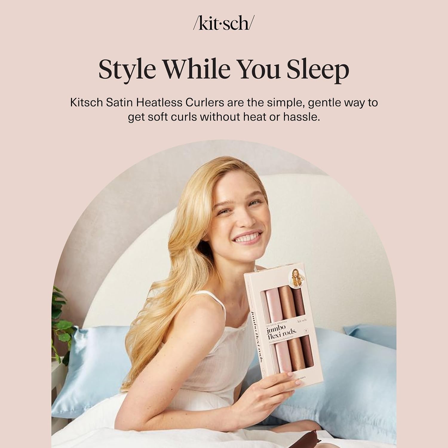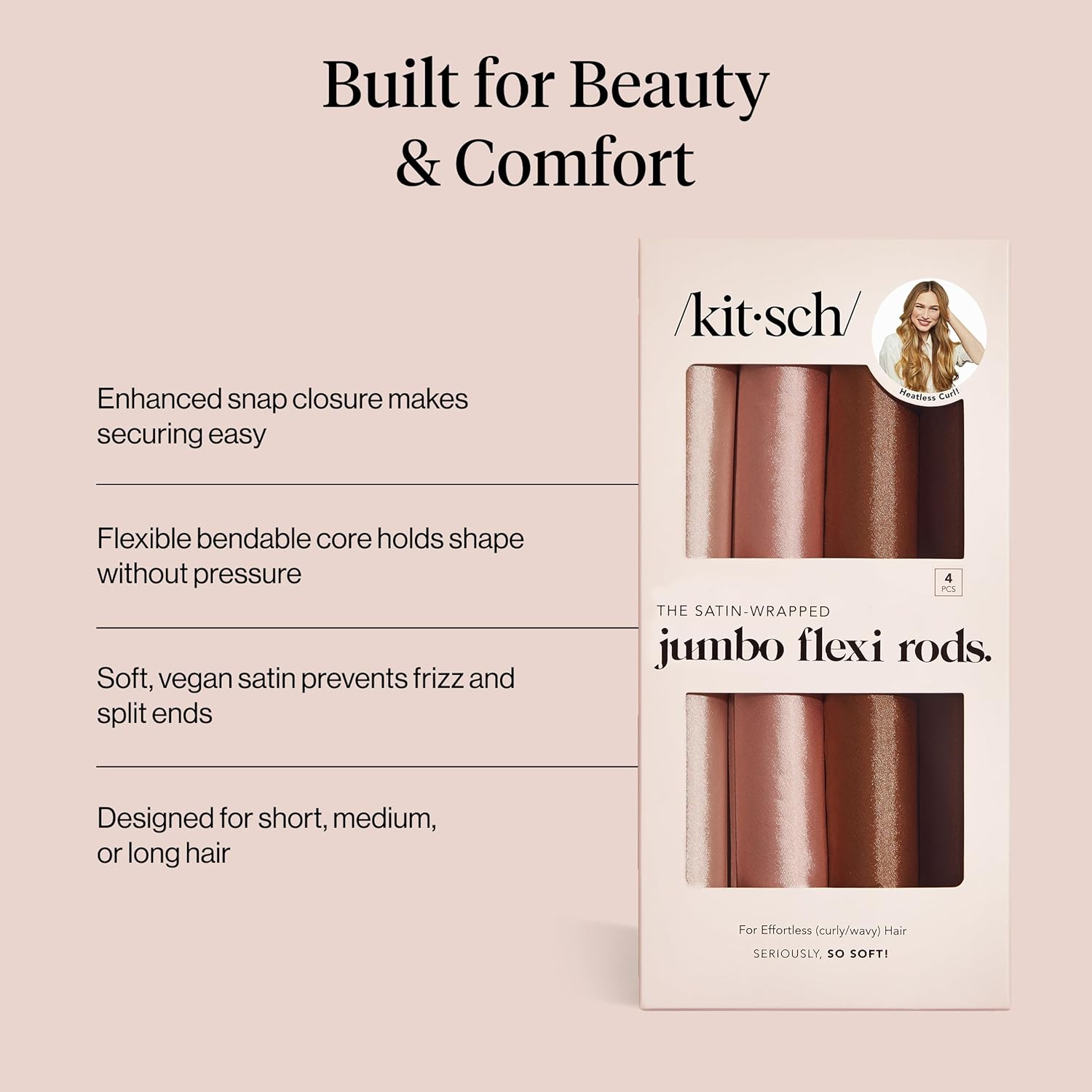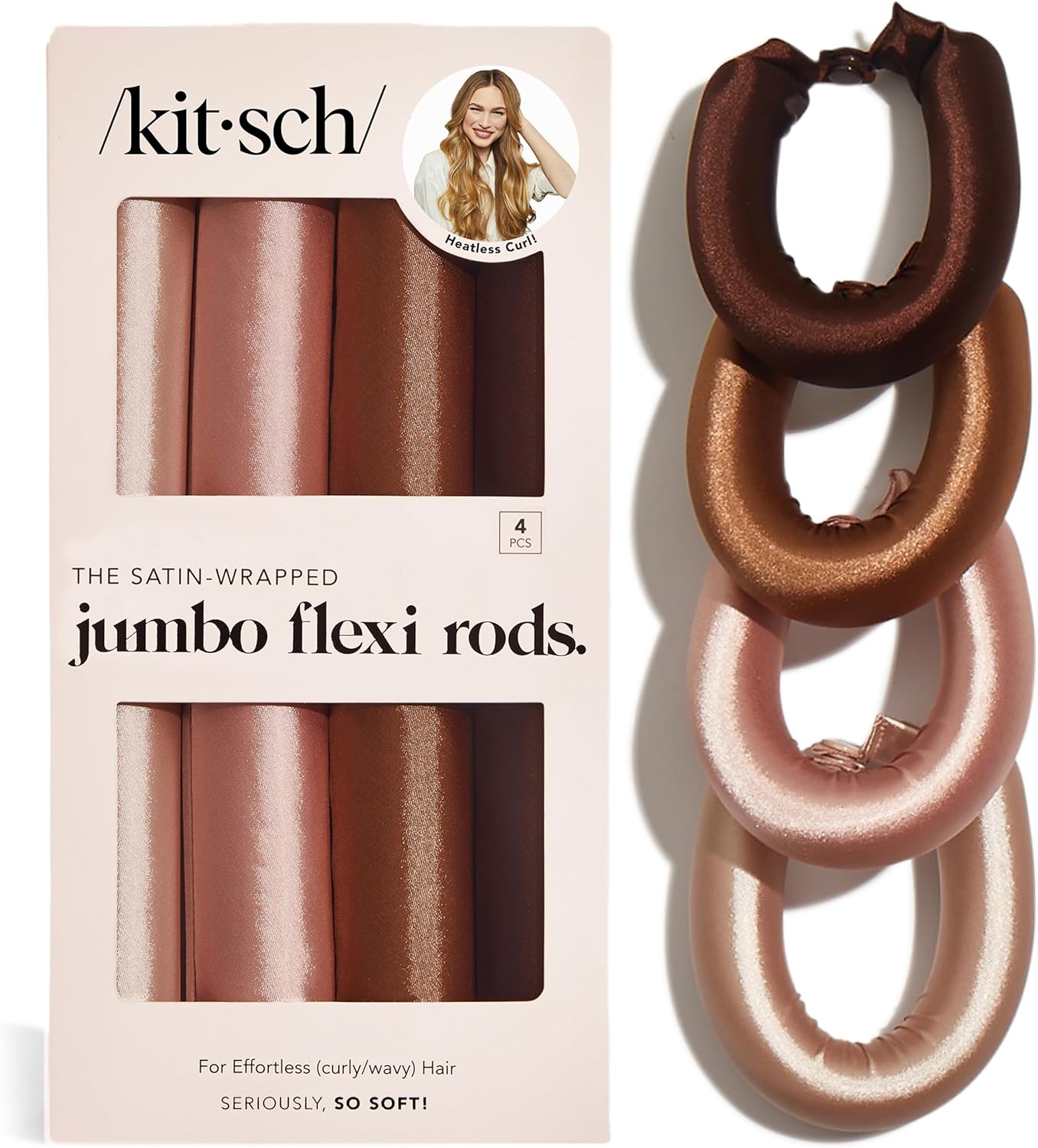 كيتش اداة تجعيد الشعر جامبو بدون حرارة – قضبان مرنة مغطاة بالساتان للشعر الطويل والقصير | تجعيد الشعر للنوم | بدون تجعيد حراري لجميع انواع الشعر، خشب الورد