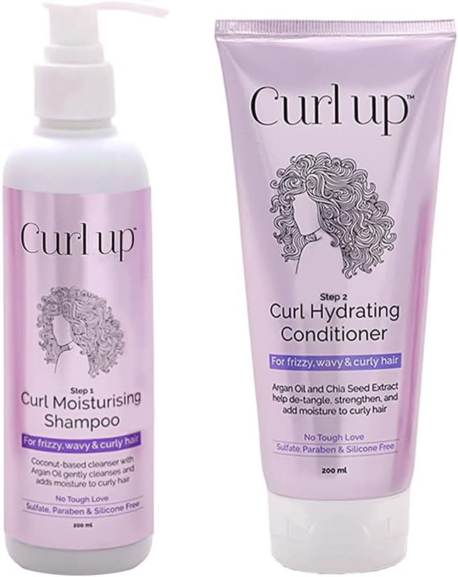 كيرل اب مجموعة غسول الشعر مع شامبو وبلسم للشعر المجعد الجاف والمموج والمجعد – خالي من كبريتات البارابين والسيليكون (مجموعة من قطعتين) – 400 مل