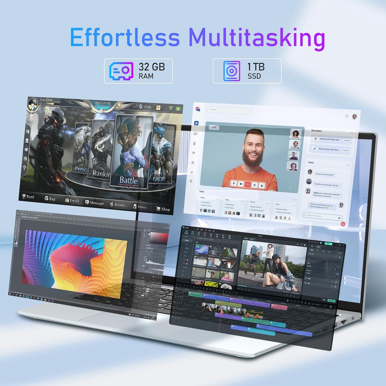 【شاشة عرض كاملة HD مقاس 15.6 انش】استمتع بتجربة بصرية نابضة بالحياة على شاشة IPS FHD مقاس 15.6 انش بدقة 1920 × 1200 بكسل. مع نسبة الشاشة إلى الهيكل تصل إلى 90%، فإن اللاب توب الخاص بنا يحتوي على نسبة امتداد 16:10، تمنحك النسبة مساحة أكبر لمشاهدة الأفلام أو تحرير الصور أو تصفح الويب.