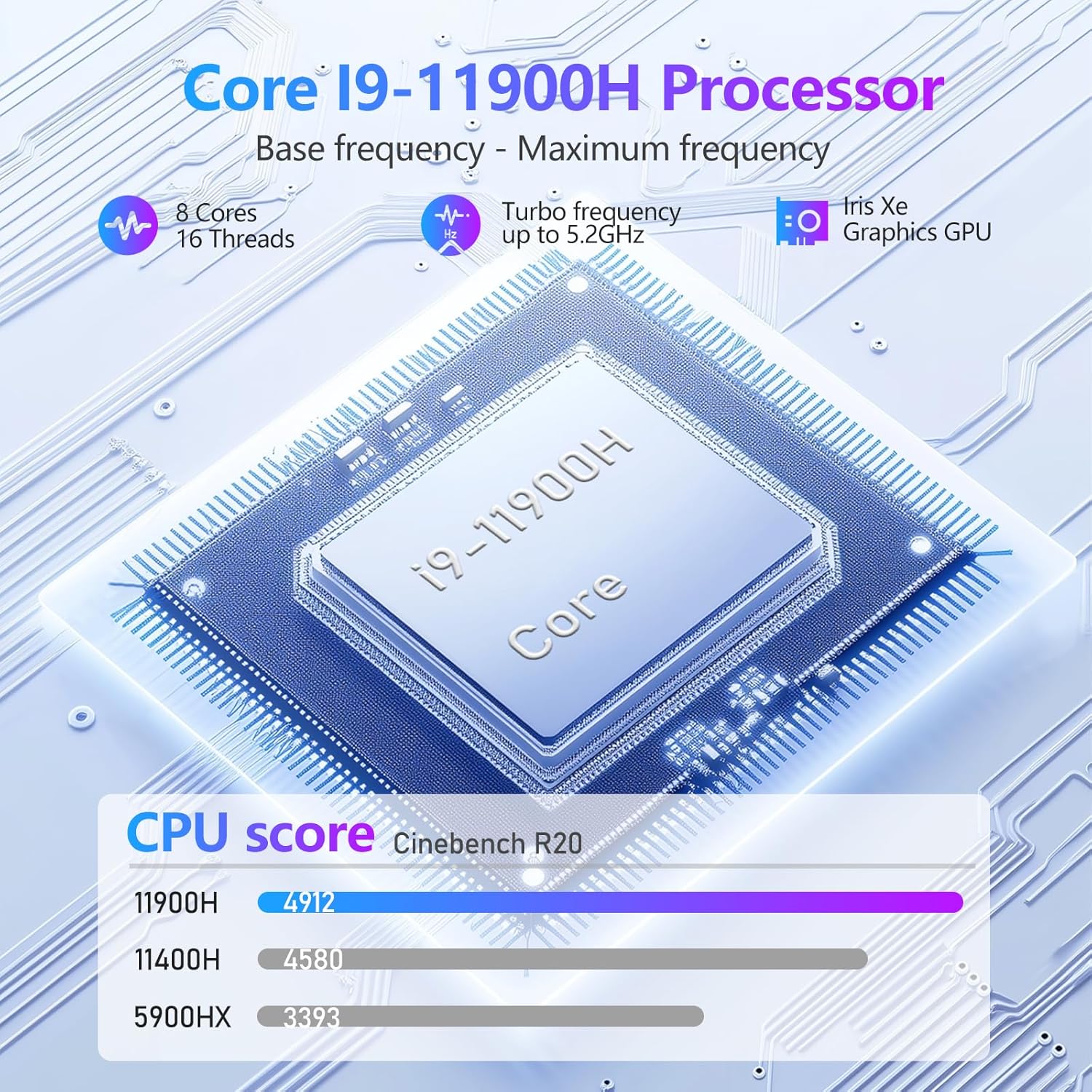 【أداء ممتاز】اللاب توب مجهز بمعالج انتل كور i9-11900H (8 نواة/16 ثريد/ذاكرة تخزين مؤقتة 24 ميجا/حتى 4.9 جيجاهرتز)، بطاقة رسومات انتل الترا اتش دي لمعالجات انتل الجيل الحادي عشر، يوفر كور i9-11900H أداءً أكثر بنسبة 30% من الجيل العاشر المكافئ مع 8 نوى، وحوالي 50% المزيد أداء أكثر من 6 نوى i7، والذي يستخدم على نطاق واسع في الألعاب، وتشغيل الوسائط المتدفقة، وتحرير الصور، وتحرير الفيديو، والنمذجة ثلاثية الأبعاد، وتحليل البيانات الضخمة وما إلى ذلك. تتيح لك الشعور بتجربة أكثر سلاسة سواء كانت مكتب أو لعبة.