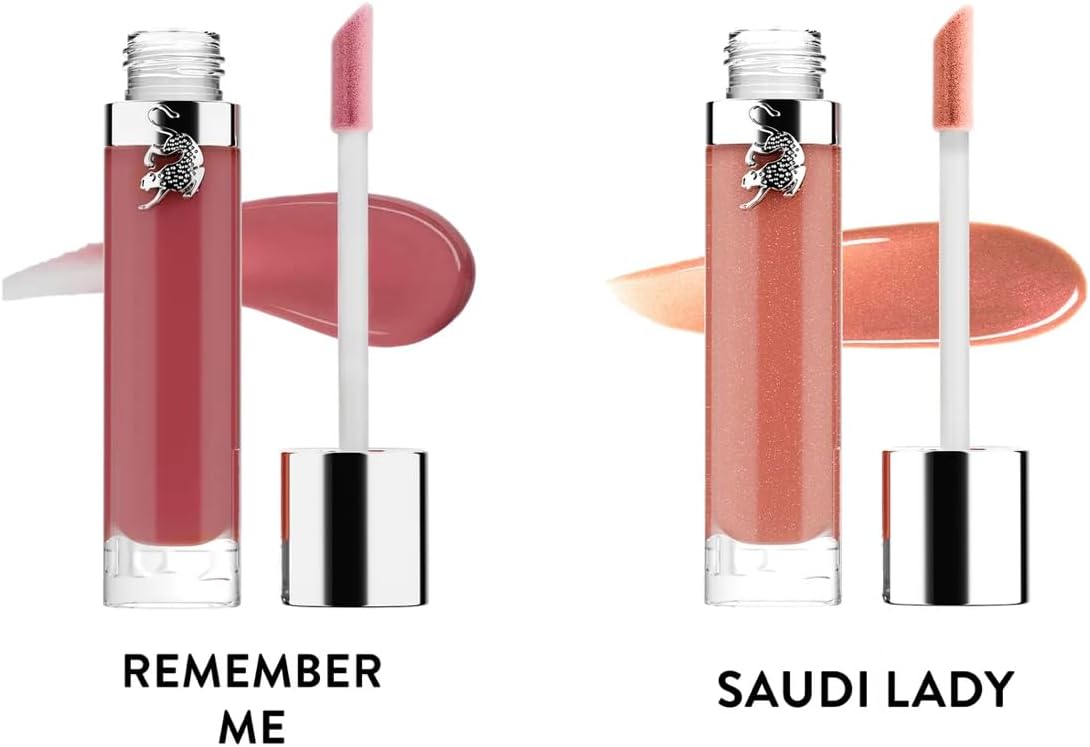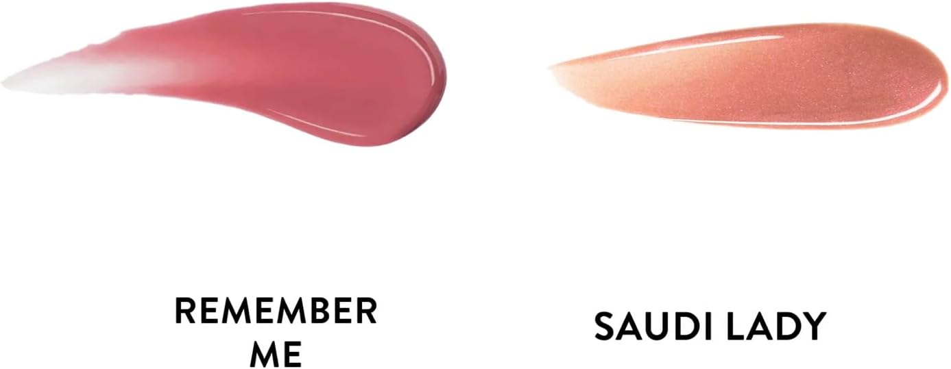 مجموعة فاخرة: اثنين من ملمع الشفاه الفاخر بدرجات أنيقة “Remember Me” (موف بينك) و “سعودي ليدي” (بيج نود لامع) مع زجاجات راقية مغطاة بالفضة