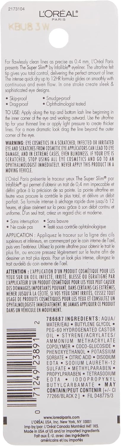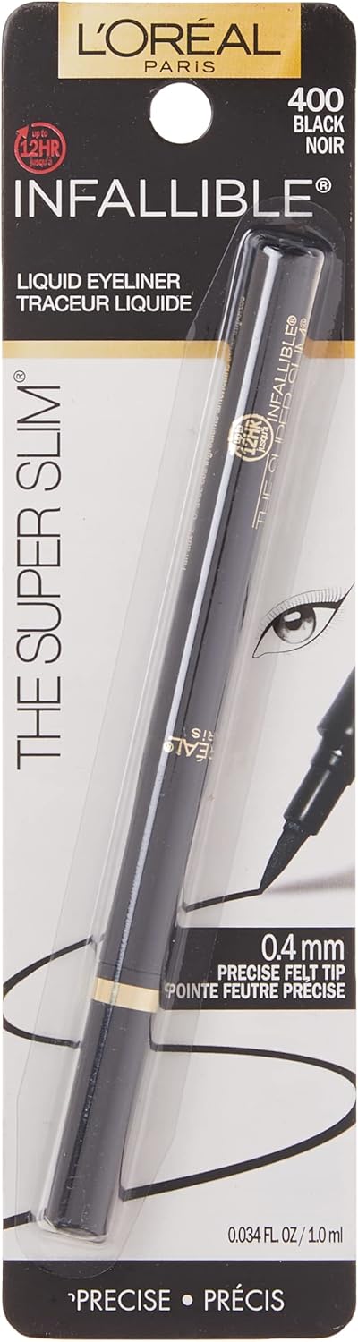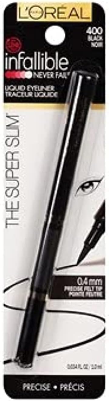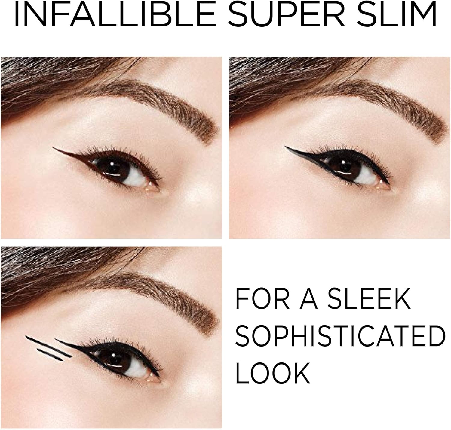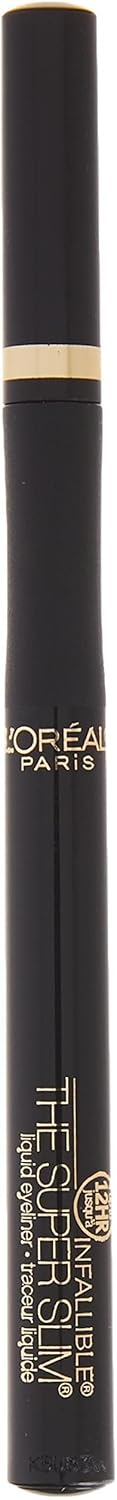 لوريال باريس قلم تحديد العين السائل فائق النحافة ويدوم طويلا من ميك اب انفاليبل، طرف لباد فائق النعومة، تركيبة سريعة الجفاف، ينزلق بسلاسة، اسود، عبوة من قطعة واحدة