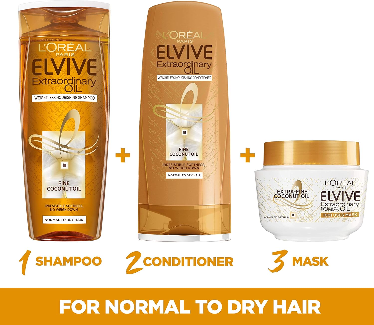لوريال باريس قناع شعر اكسترا اورديناري بزيت جوز الهند من الفيف للشعر العادي الى الجاف، 300 مل