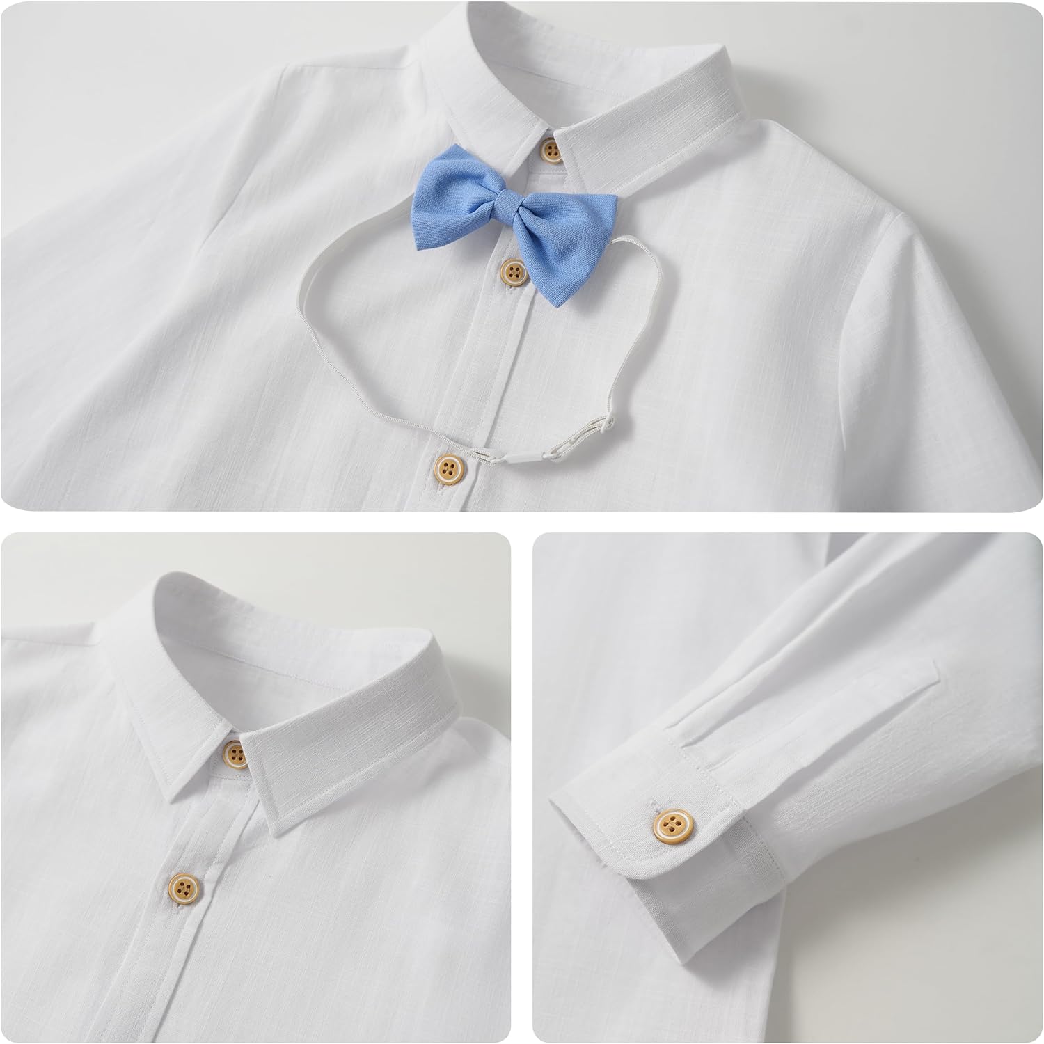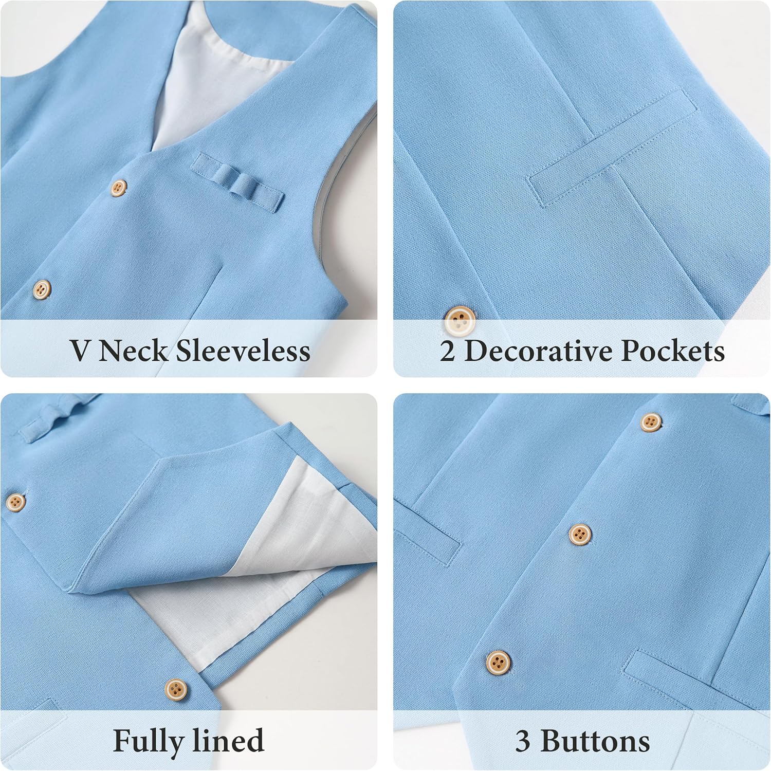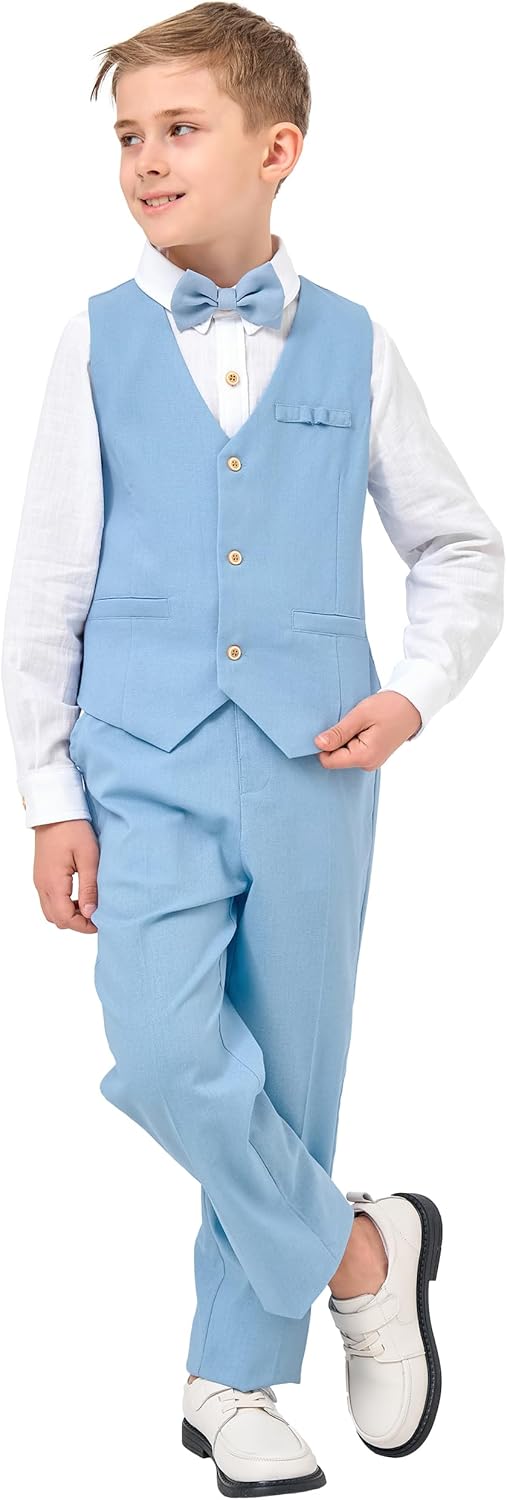 ارتقِ بمستوى أناقة طفلك الصغير مع طقم البدلة المكون من 4 قطع من الكتان للأولاد. مجموعة البدلة الأصلية هذه مثالية لحفلات الزفاف والحفلات للأولاد ولم شمل الأسرة والمناسبات المدرسية وبدلات التخرج للأولاد والكنيسة والاحتفالات والتصوير الفوتوغرافي والمناسبات الخاصة الأخرى. كما أنها مناسبة للاستخدام اليومي، بدلة عيد ميلاد للأولاد. تتكون المجموعة من سترة من الكتان برقبة على شكل حرف V، وإغلاق بصف واحد وجيبين مزخرفين، وتصميم زخرفي صغير على الصدر يمكنك استخدامه لحمل القلم أو وضع الزينة مثل الزهور. إلى جانب قميص كتان أبيض أنيق وبنطلون كتان متناسق، بنطلون تشينو بخصر مرن خفيف الوزن مع جيوب حقيقية، أرجل مستقيمة بقصة عادية، ربطة عنق مطابقة لإكمال المظهر؛ بدلة زفاف صيفية للشاطئ للأولاد من سن 5 إلى 12 سنة، توفر هذه المجموعة الأناقة والراحة والأناقة والعملية.