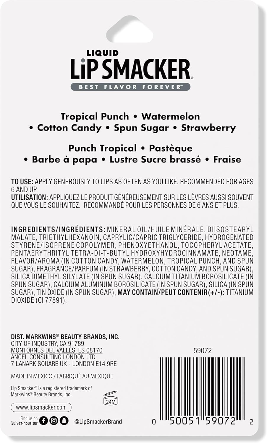 ليب سماكر عبوة ملمع شفاه بنكهة سائلة | تروبيكال بانش والبطيخ وحلوى البنات والسكر والفراولة | هدايا الكريسماس | مجموعة من 5 قطع