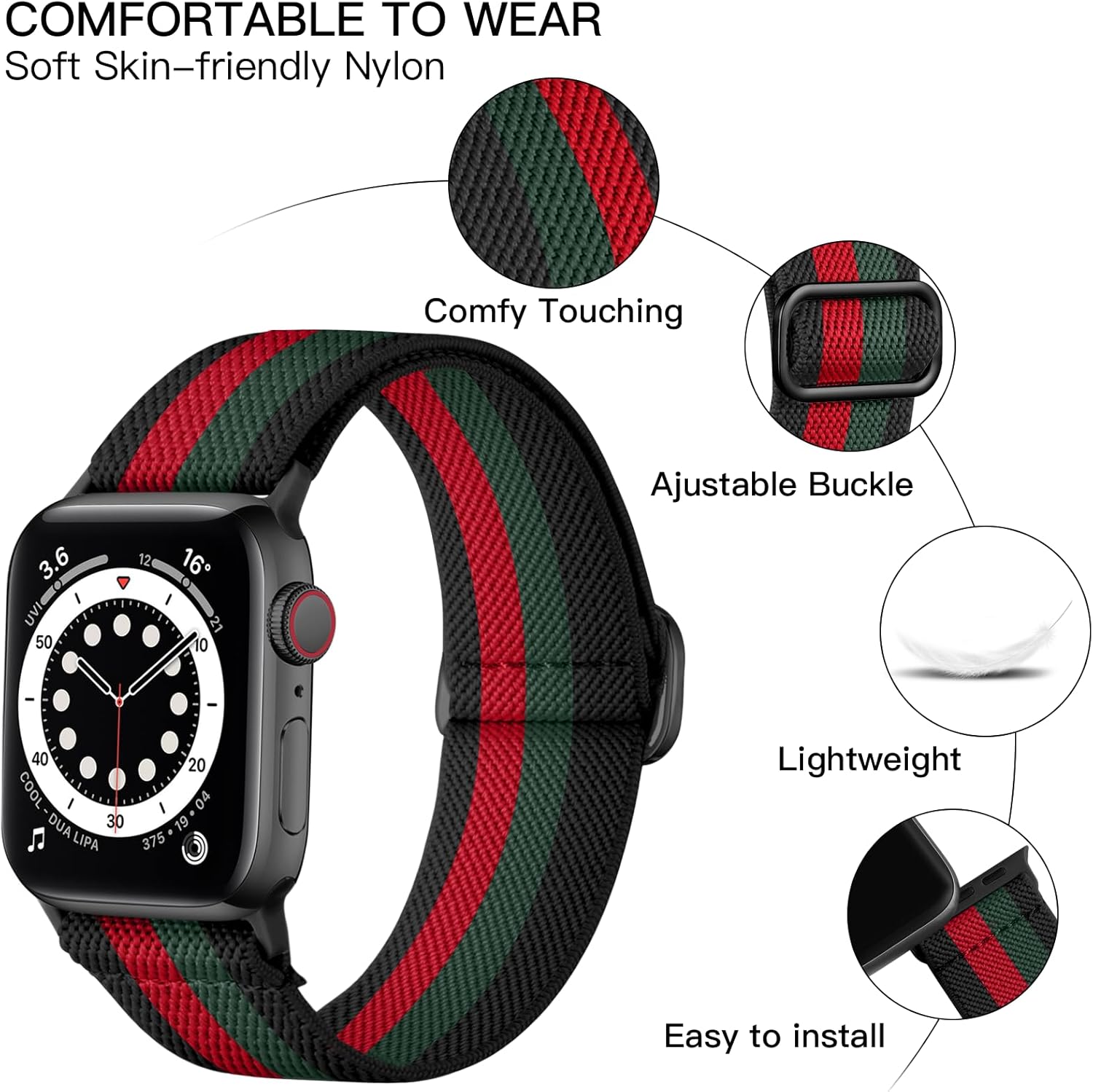 سوار نايلون قابل للتعديل من ليروبو لساعة اي ووتش 38 ملم 40 ملم 45 ملم 41 ملم 44 ملم 42 ملم 49 ملم للنساء والرجال، مناسب لسلسلة 9/8/7/6/5/4/3/2/1/SE، جميع الإصدارات