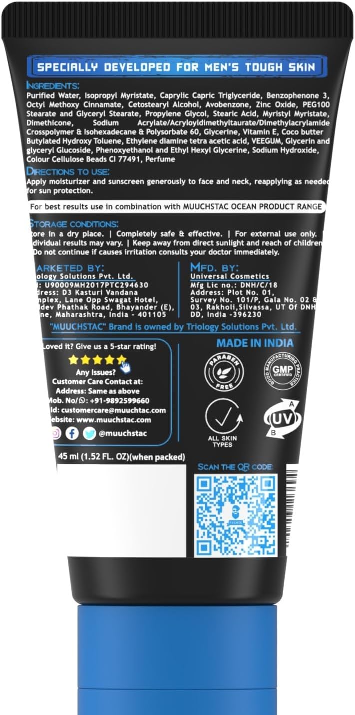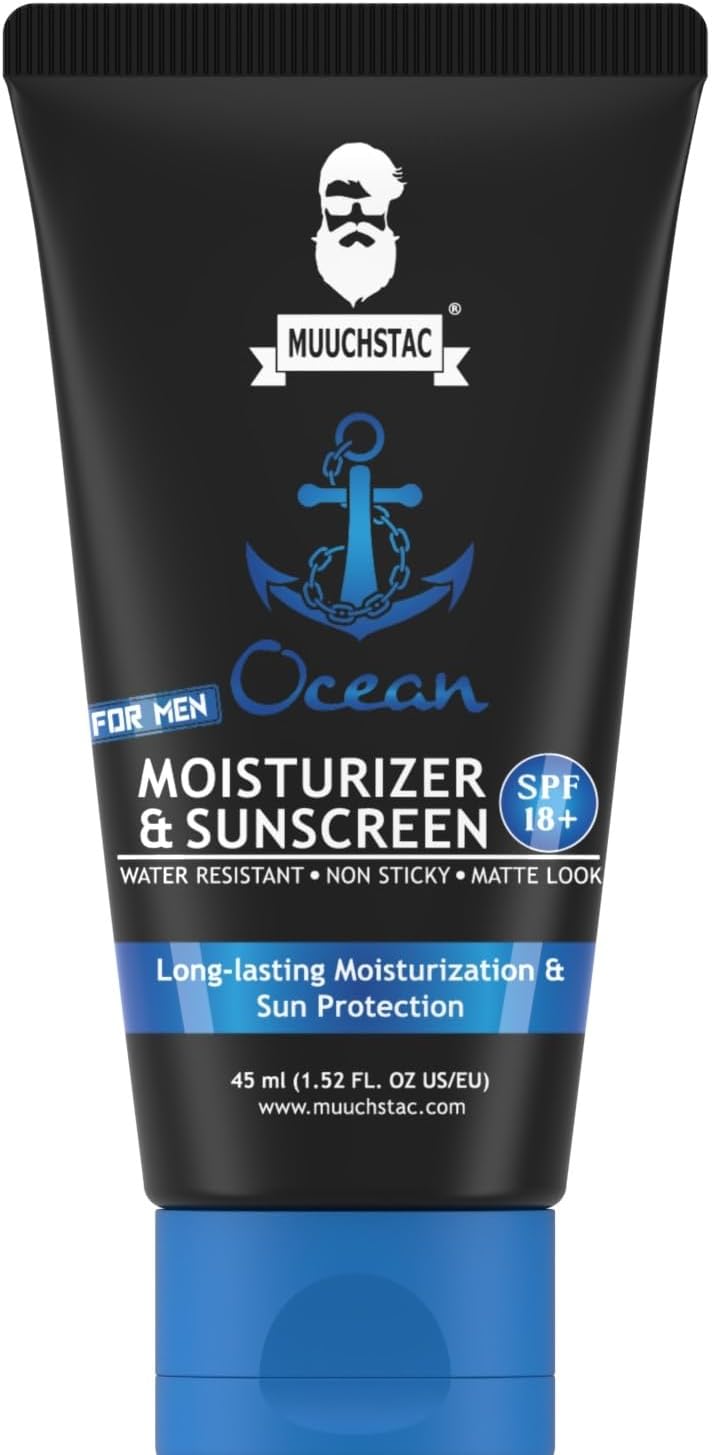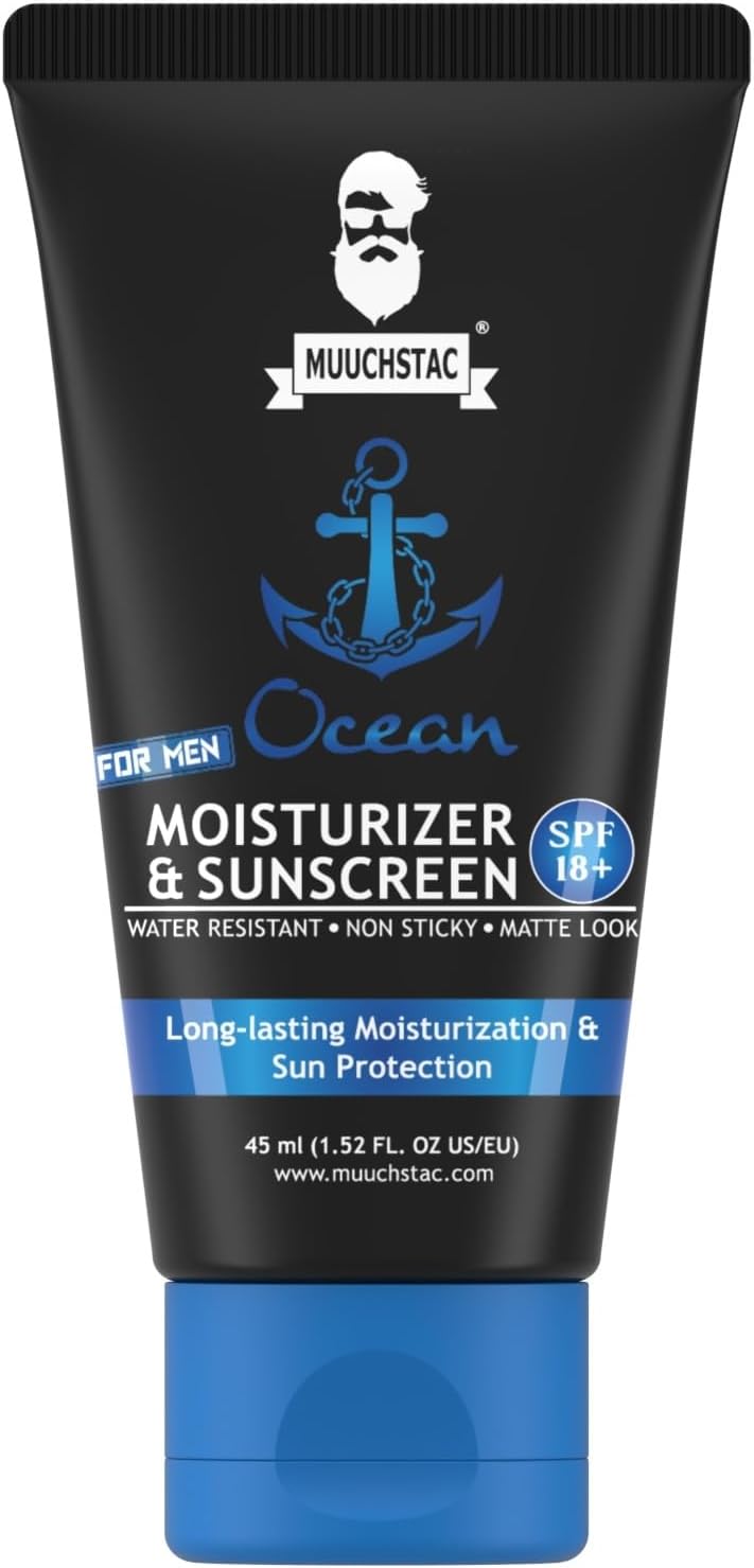 ماتشاستاك كريم مرطب وواقي من الشمس للرجال من اوشن بمظهر مات بعامل حماية من الشمس 18+ مع خرز الكركم والصبار، غير لاصق ومقاوم للماء، 45 مل