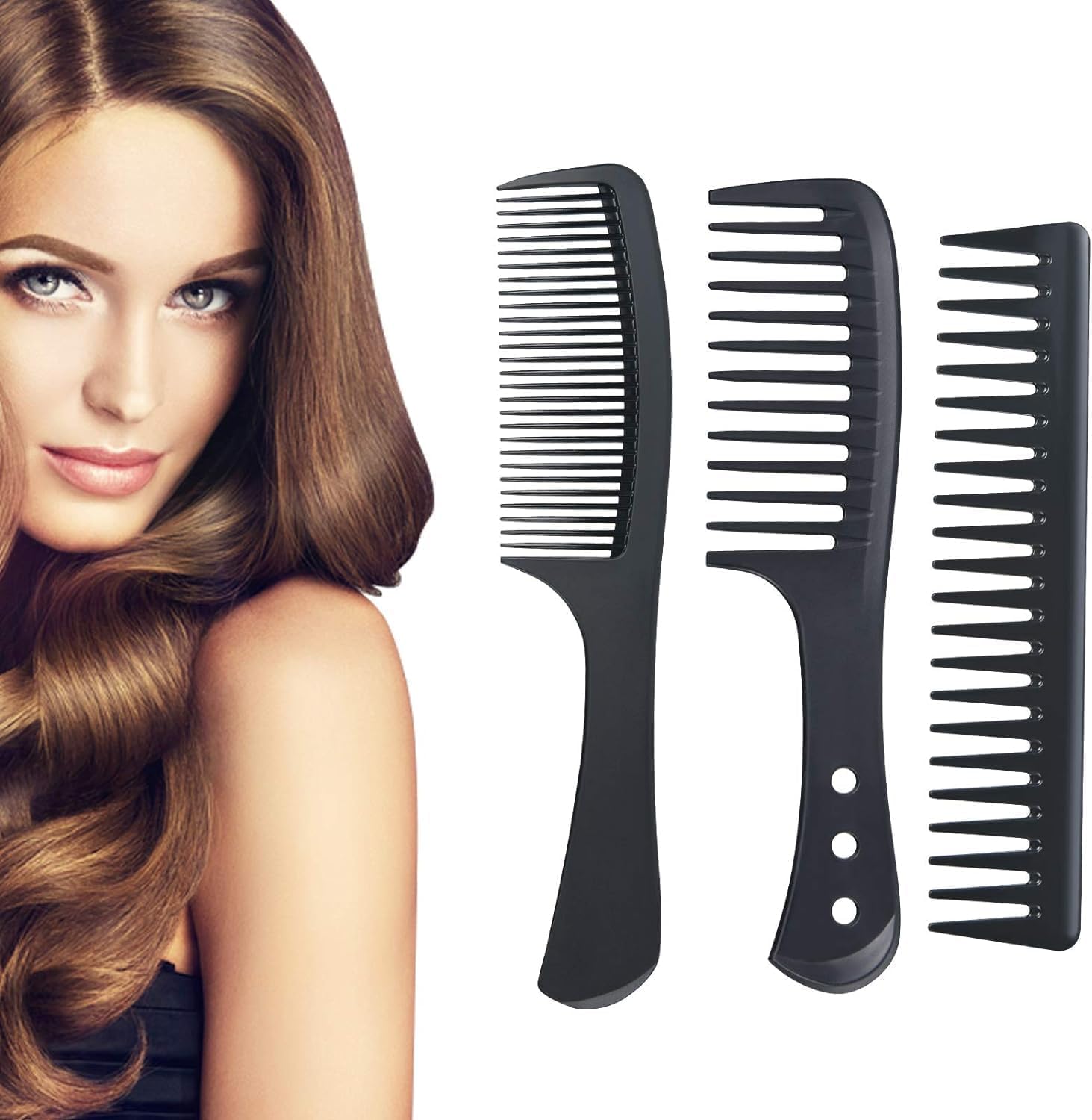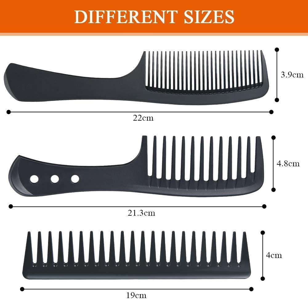 ماكمولا مجموعة امشاط تصفيف الشعر، 3 قطع امشاط باسنان عريضة، فرشاة شعر كربون مقاومة للحرارة ومضادة للكهرباء الساكنة، مشط شعر لفك تشابك الشعر الطويل او الرطب او المجعد