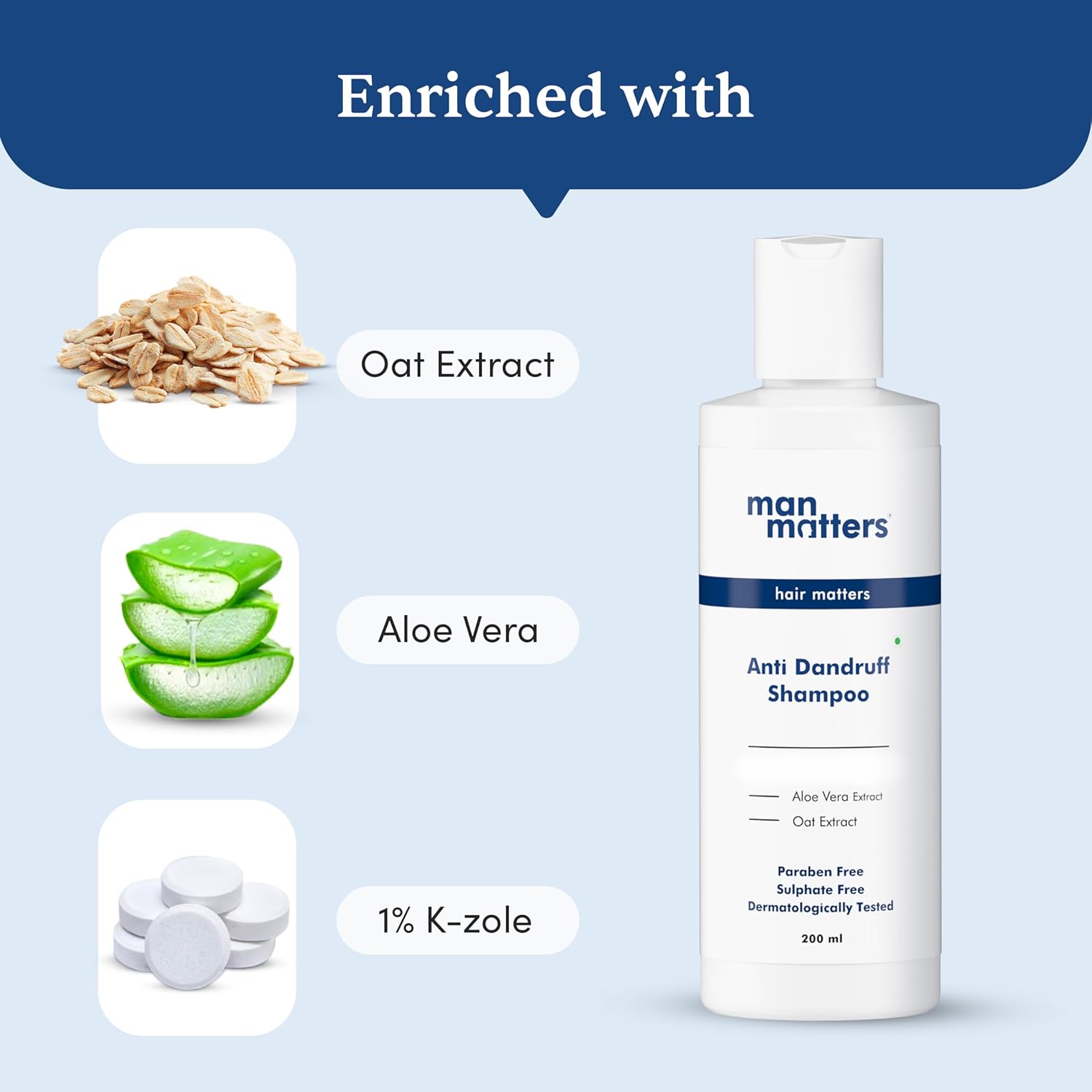 مان ماترز شامبو متطور مضاد للقشرة للرجال | بخلاصة الصبار وفيتامين B5 | 1% كيتوكونازول | لا يتقشر او حكة او جافة للبشرة برعاية مشتركة من اطباء الجلدية | خالي من الكبريتات | 200 مل