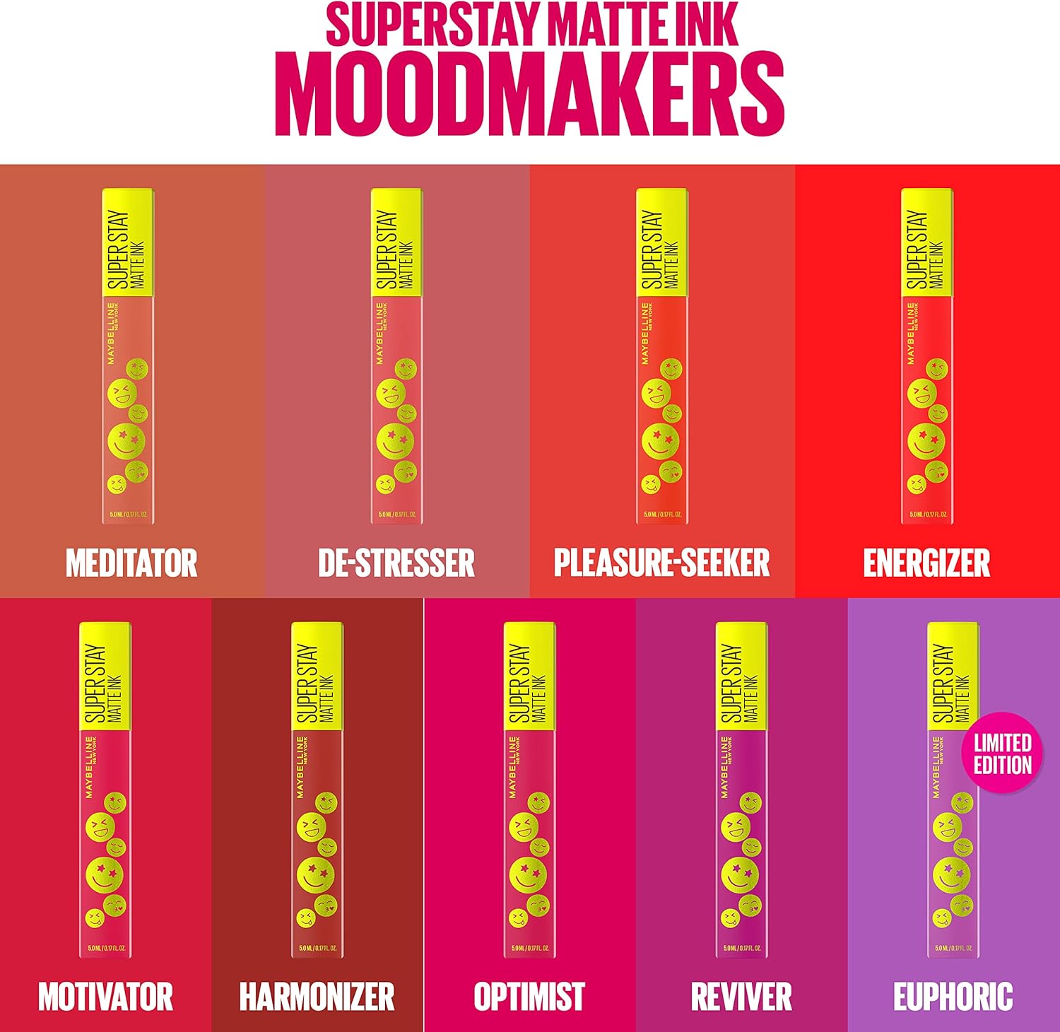 مثالي بشكل مكثف ومكثف بشكل مثالي. حبري شفتيك لمدة تصل إلى 16 ساعة من اللمعان المشبع مع أحمر الشفاه السائل سوبر ستاي مات انك من ميبيلين نيويورك! يتميز أحمر الشفاه السائل غير اللامع عالي الصبغة هذا بأداة توزيع فريدة من نوعها من أجل تطبيق دقيق. التركيبة تدوم طويلاً وتعطي لمسة نهائية غير لامعة لا تشوبها شائبة في 39 لونًا نابضًا بالحياة تتراوح من أحمر الشفاه السائل الأحمر الكلاسيكي إلى ظلال أحمر الشفاه الساطعة والجريئة. نقدم الآن مجموعة مود ميكرز الجديدة. تتوفر هذه المجموعة الجديدة من الألوان غير اللامعة في 9 درجات ألوان ومصممة من قبل علماء الألوان لبناء مزاجك.