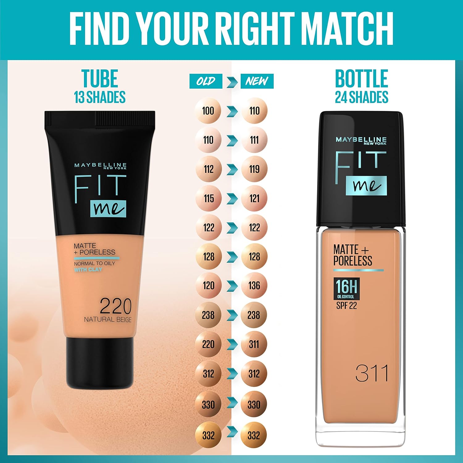 اكتشف تركيبة مايبيلين نيويورك الجديدة المطورة الآن مع تحكم أطول في الزيت! تم تركيبه الآن بعامل وقاية من أشعة الشمس 22 والتحكم في الزيت لمدة 16 ساعة للحصول على لمسة نهائية طبيعية غير لامعة تدوم طوال اليوم! تأتي الآن في زجاجة زجاجية فاخرة مع مضخة لسهولة الاستخدام. متوفر بـ 24 درجة لون ملائمة. تم تصميم فيت مي مات اند بورليس للبشرة العادية إلى الدهنية. تعمل مساحيقها الدقيقة غير الواضحة على تحسين المسام وتمتص اللمعان للحصول على لمسة نهائية طبيعية غير لامعة. كريم اساس فيت مي مات اند بورليس يناسب البشرة والملمس للحصول على لمسة نهائية طبيعية وبشرة بدون مسام.