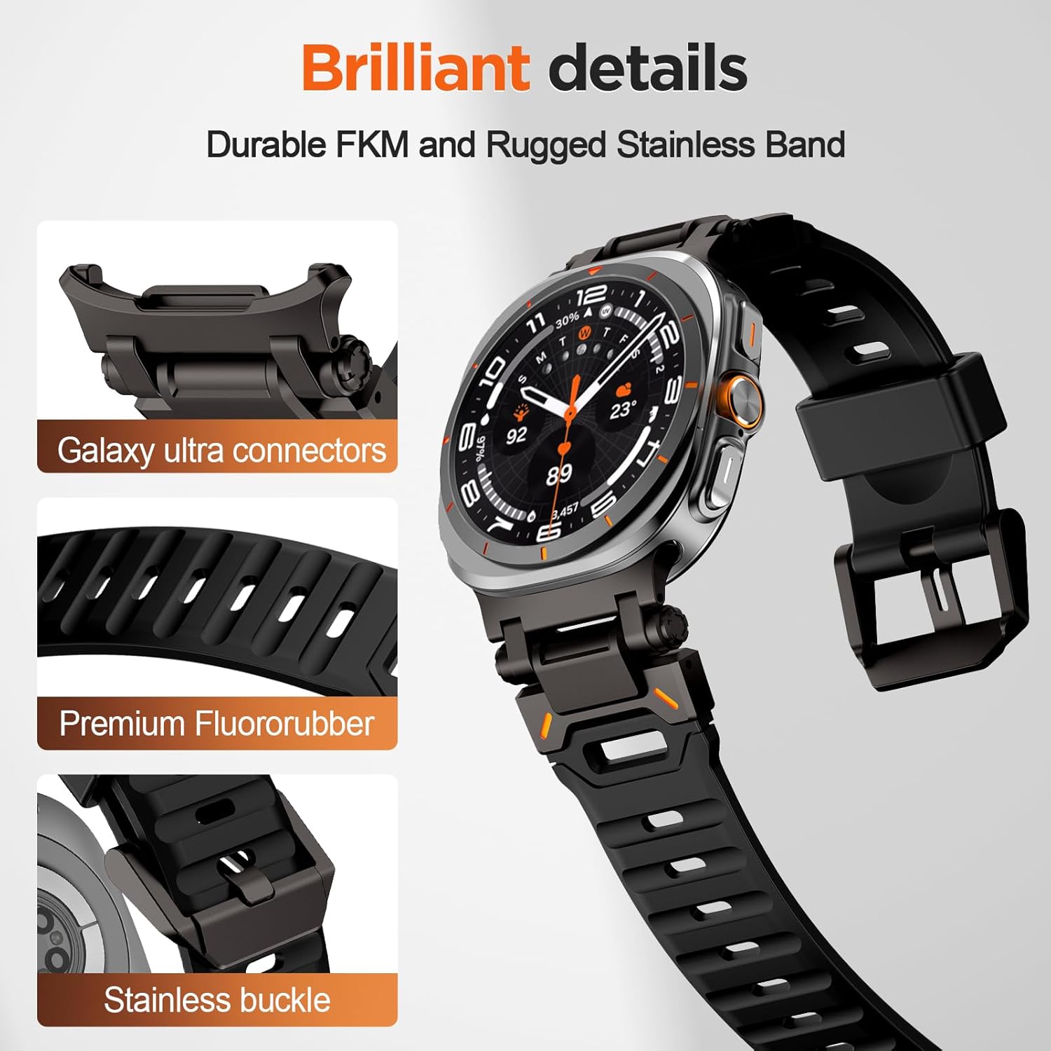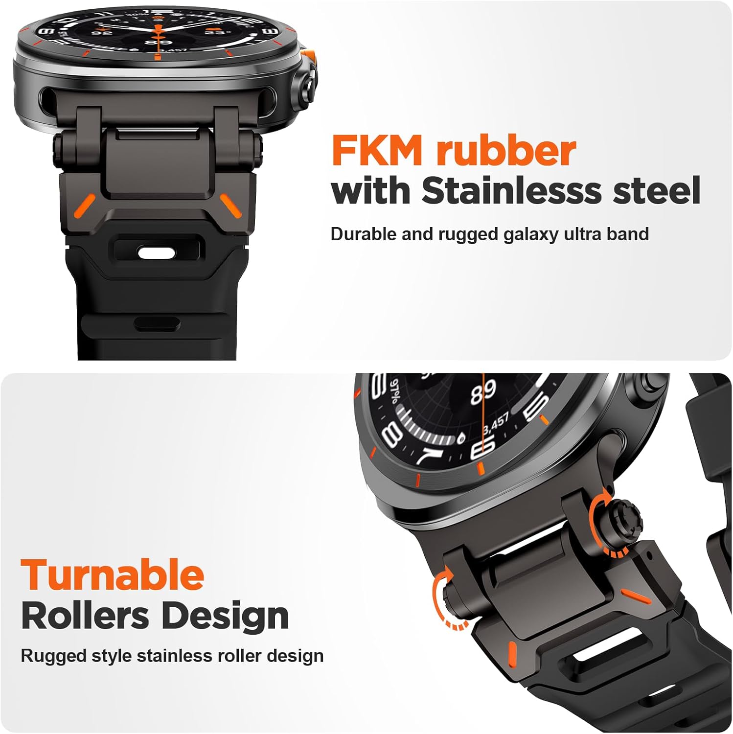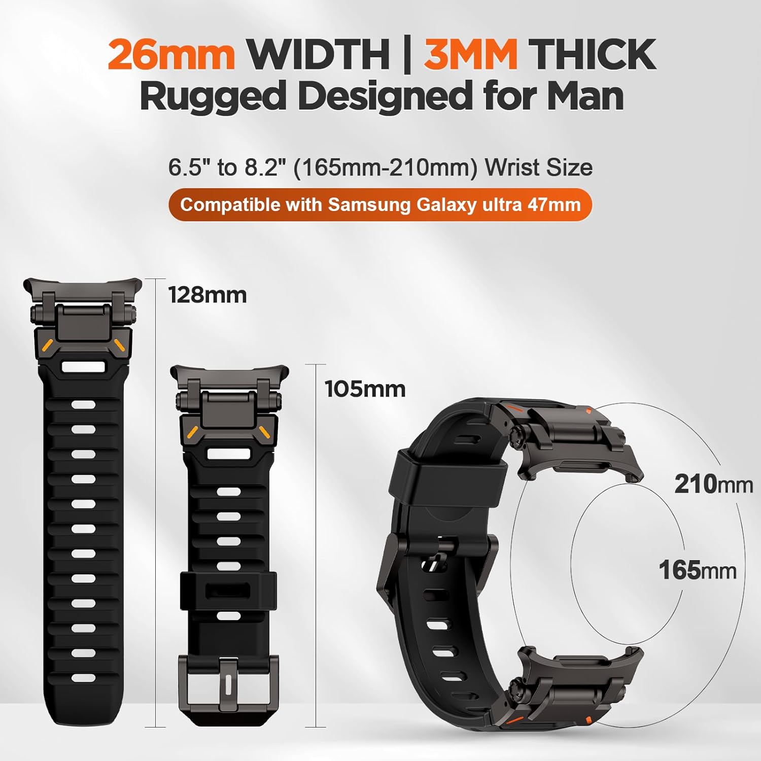 متوافق مع ساعة سامسونج جالكسي الترا 47 ملم اف كيه ام للرجال، سوار رياضي متين من المطاط الفلوري مع موصل معدني متوافق مع سوار جالكسي الترا 47 ملم