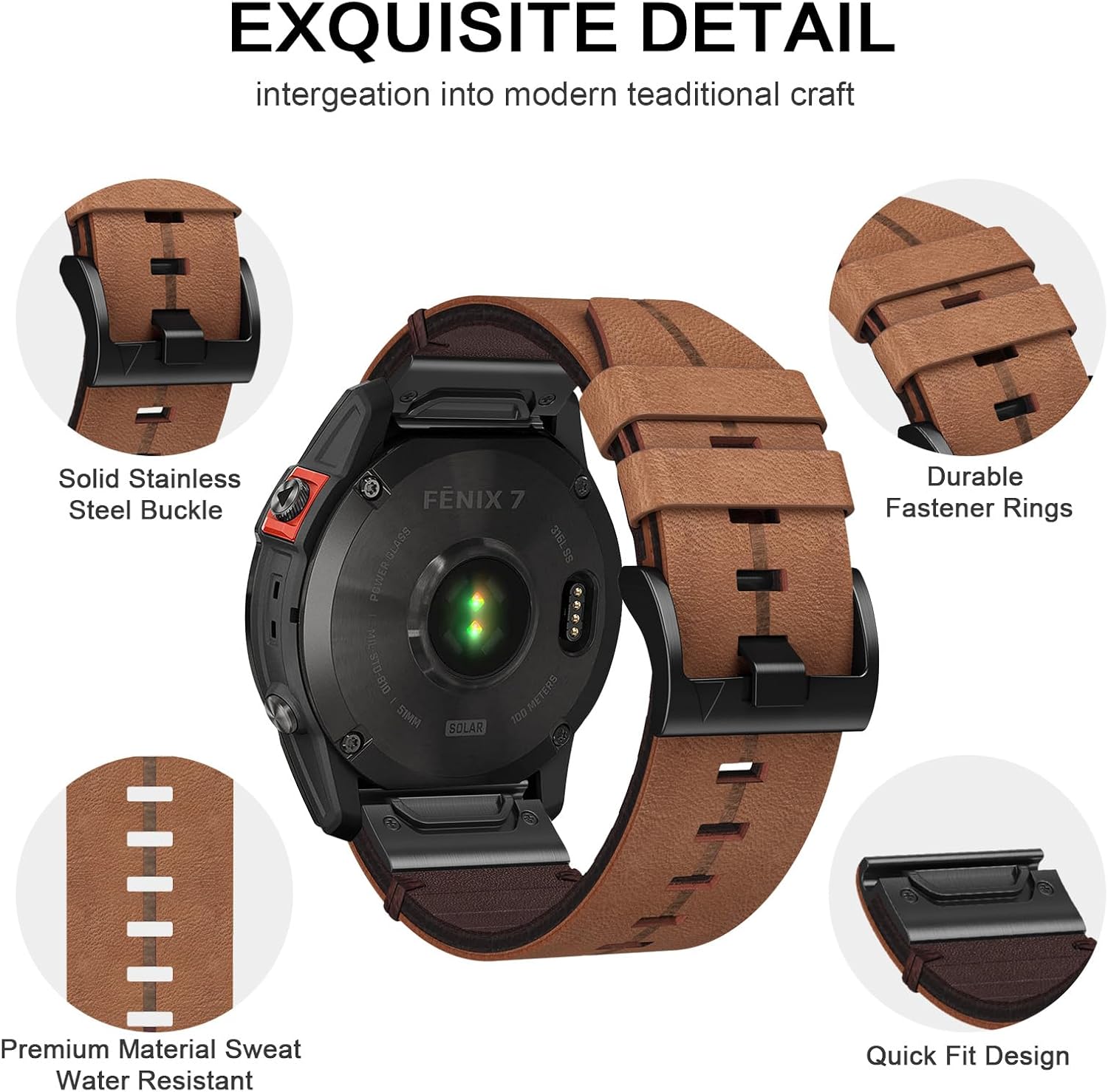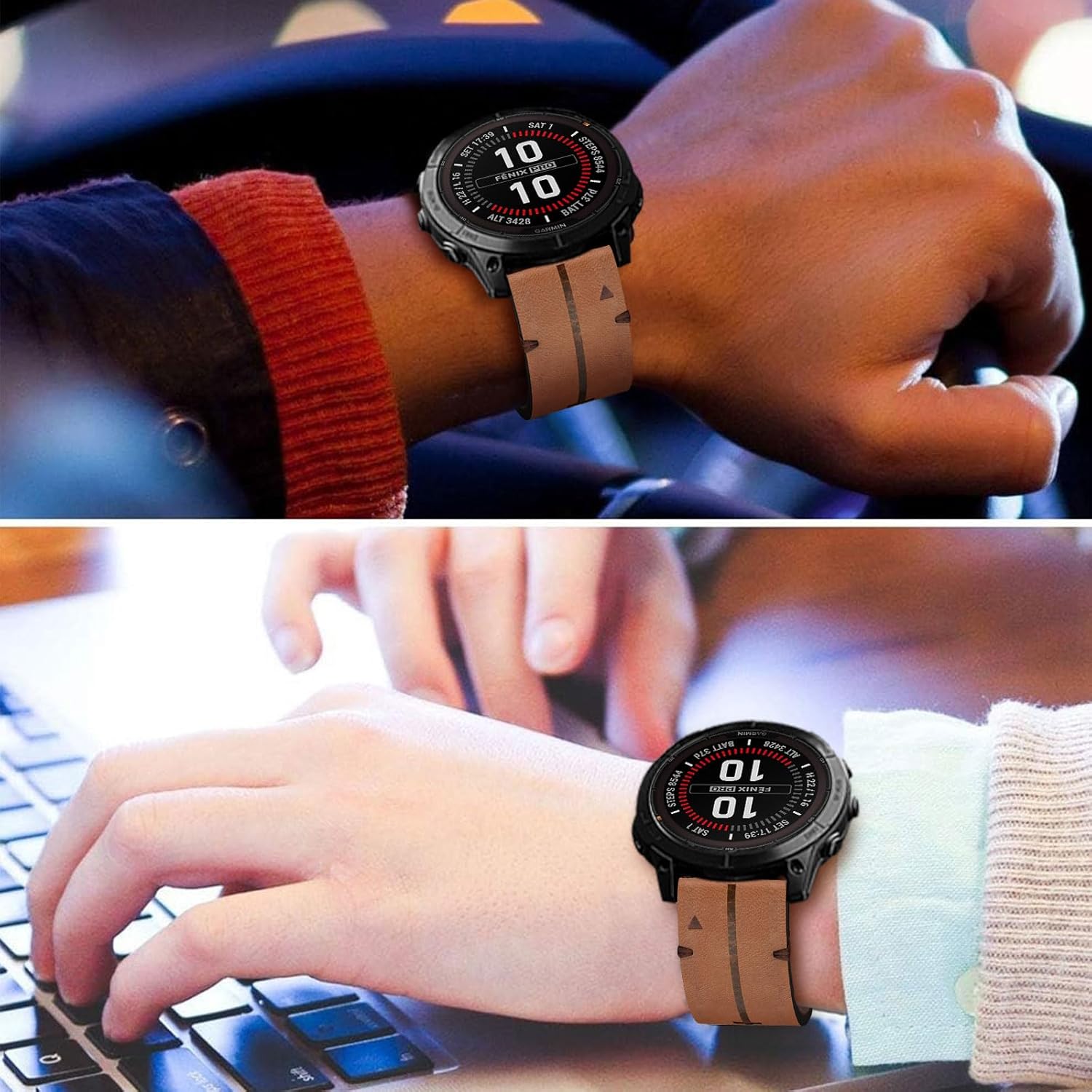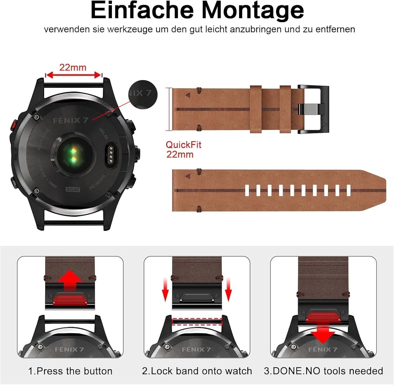 متوافق مع سوار جارمين فينكس 7، سوار بديل من الجلد سريع الملاءمة 22 ملم لجارمين فينيكس 8 47 ملم/فينيكس 7 برو سولار/7 برو/7 سولار/6/6 برو/6 سولار/5/5 بلس/جارمين ايبيكس 2 47 ملم/فور رانر
