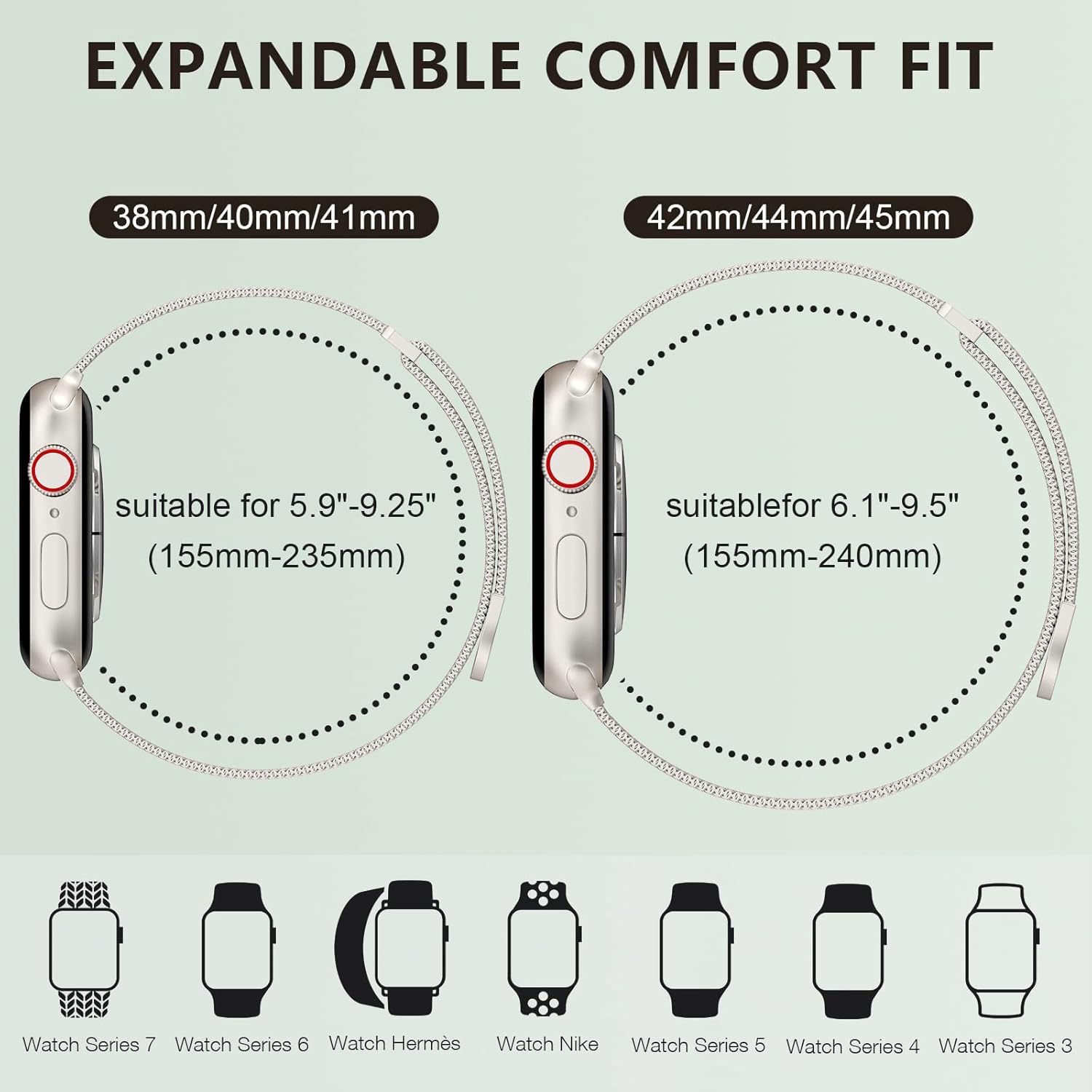 متوافق مع سوار ساعة ابل 45 ملم 42 ملم 44 ملم 49 ملم للنساء والرجال، سوار معصم مغناطيسي بحلقة شبكية من الستانلس ستيل