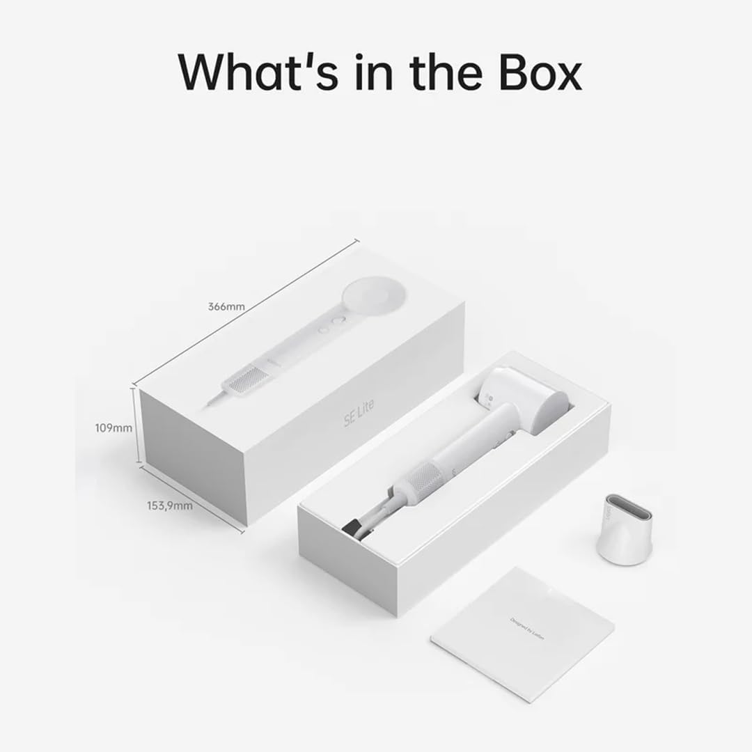 مجفف شعر اس اي لايت من لايفين، مجفف شعر ايوني سالب 150 مليون مع محرك عديم المسفرات 100000 دورة في الدقيقة، مجفف شعر قوي وسريع الجفاف وعالي السرعة ومنخفض الضوضاء، تصميم خفيف الوزن وصغير الحجم (ابيض)